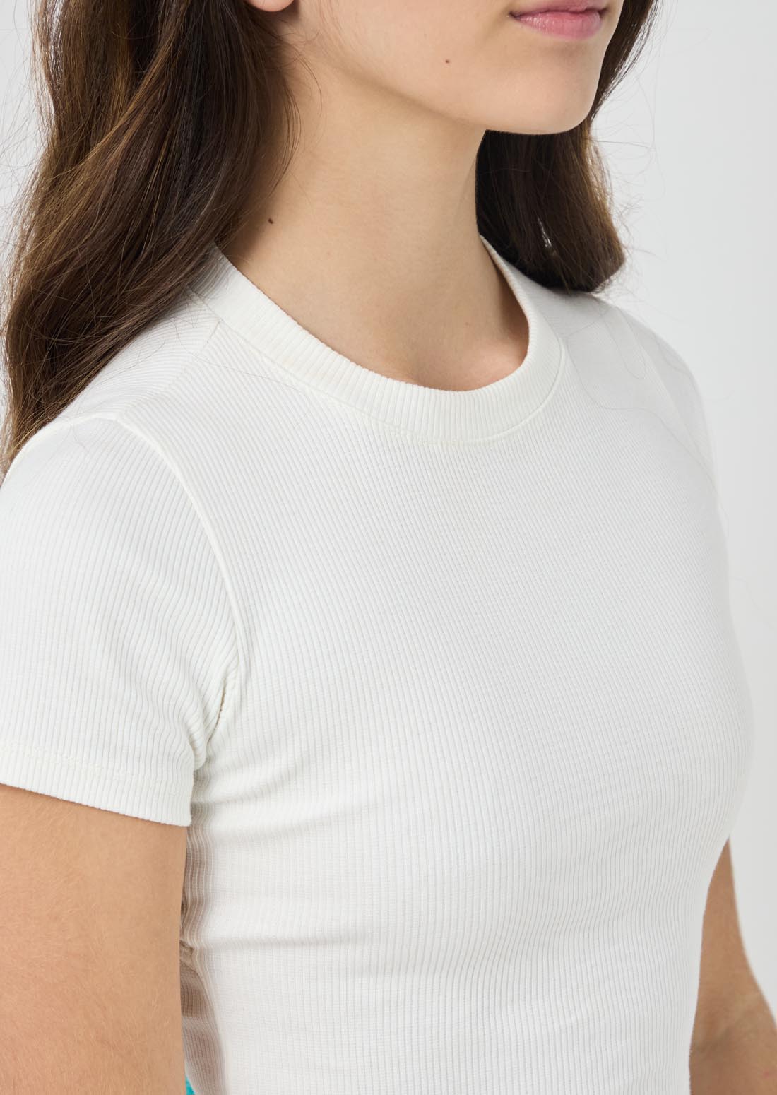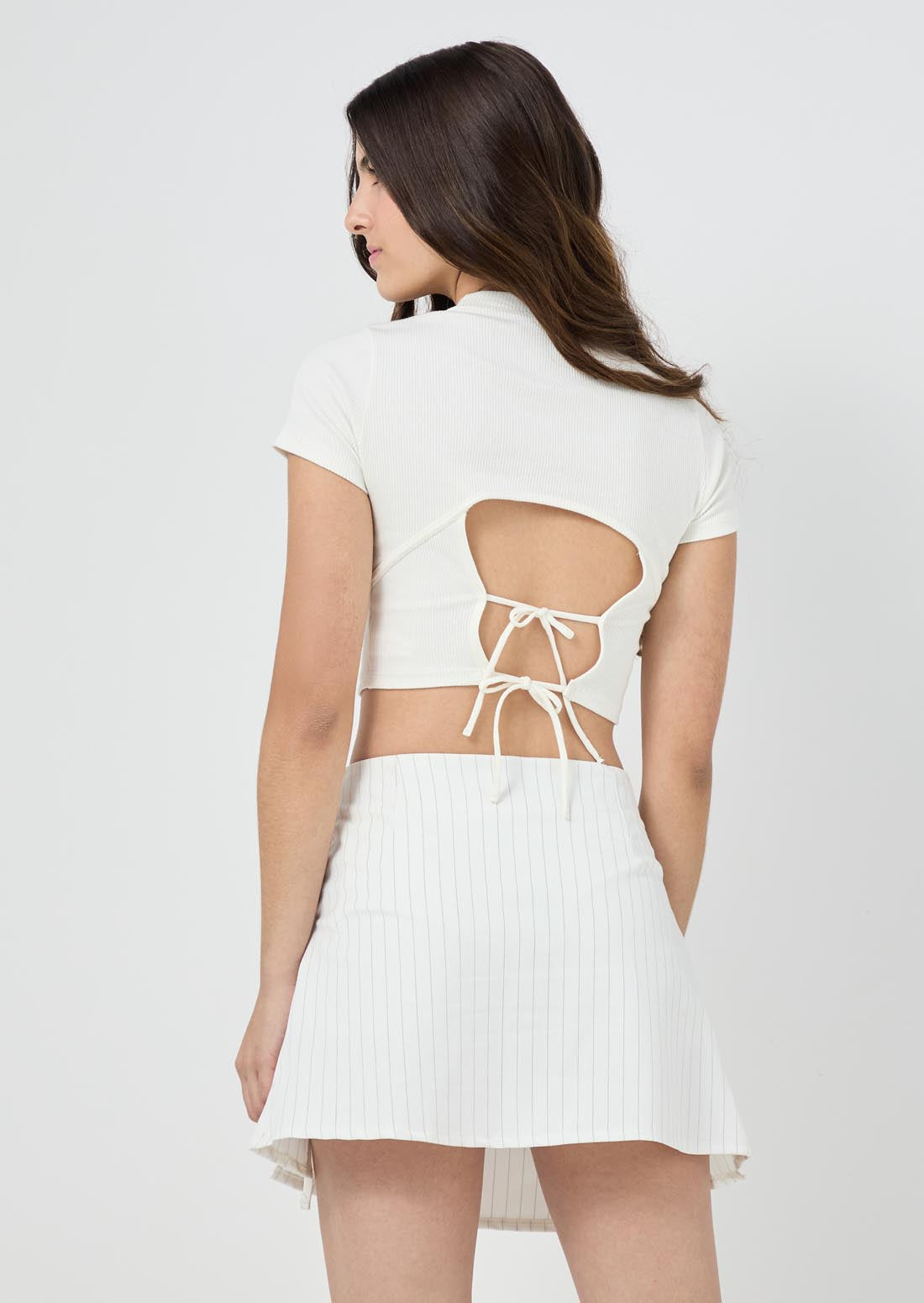 Camiseta manga corta, color marfil y con amarre en espalda para jóvenes.