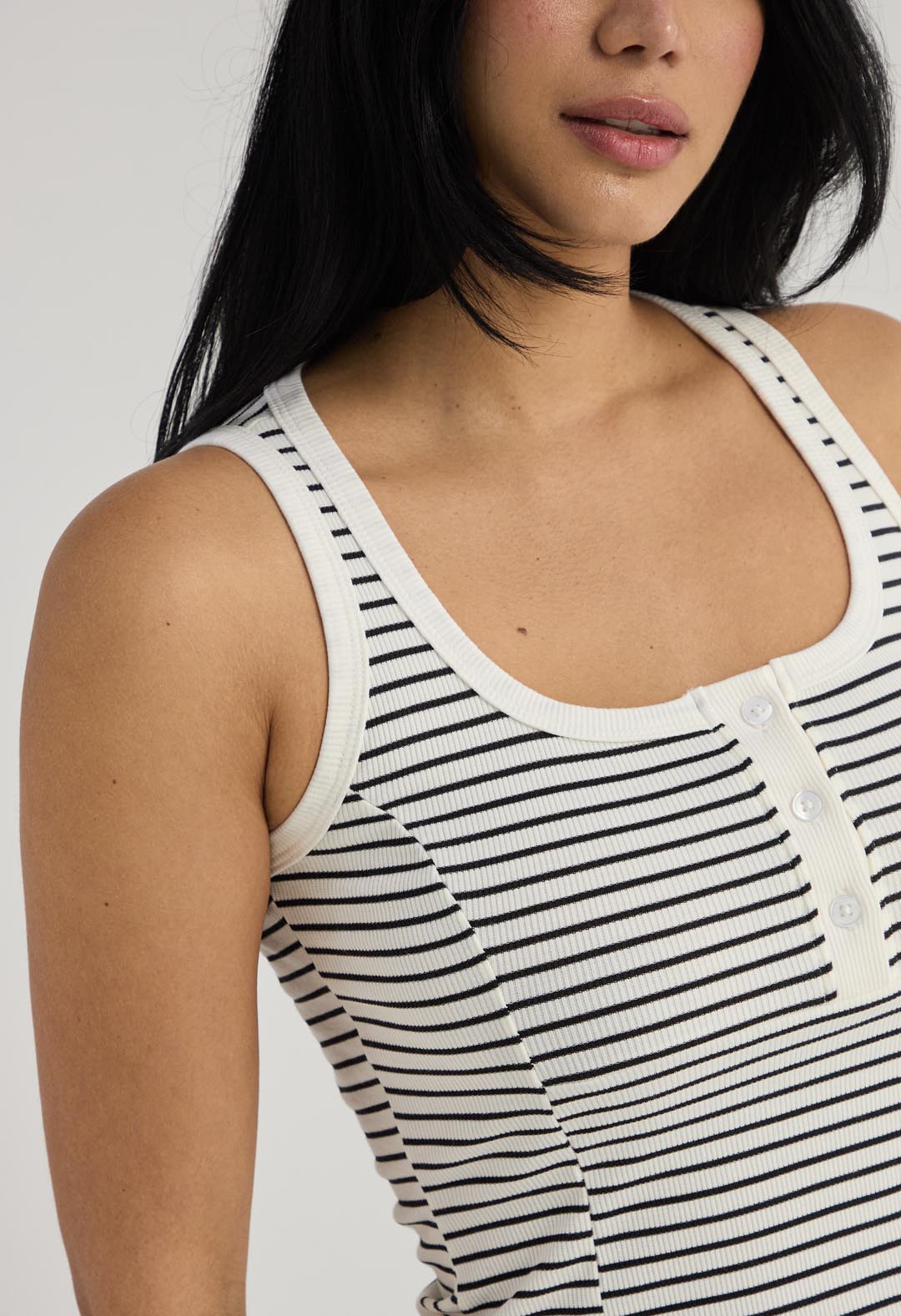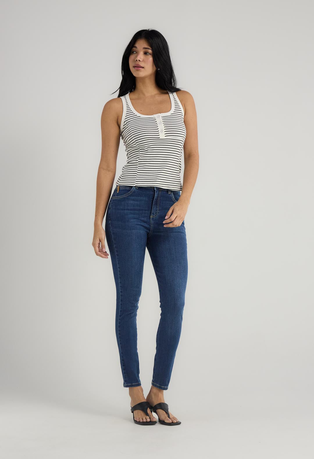 camiseta manga sisa, color marfil, con abrochadura en escote y fondo entero para mujer.