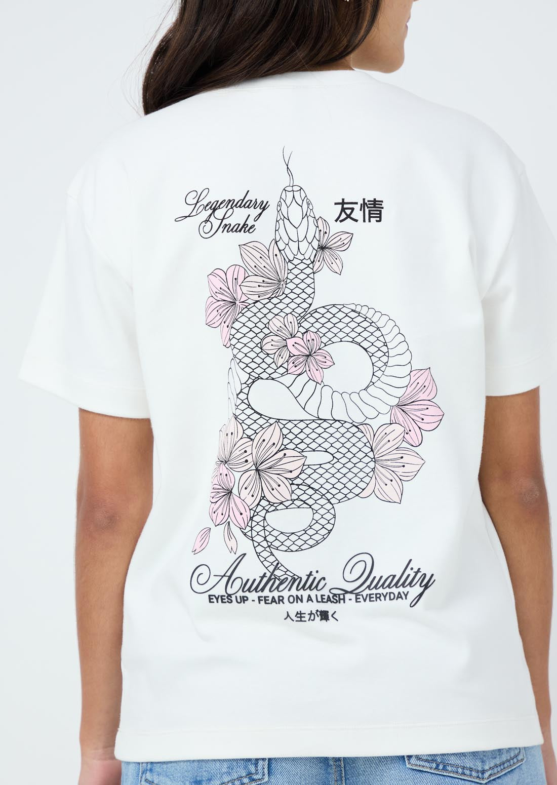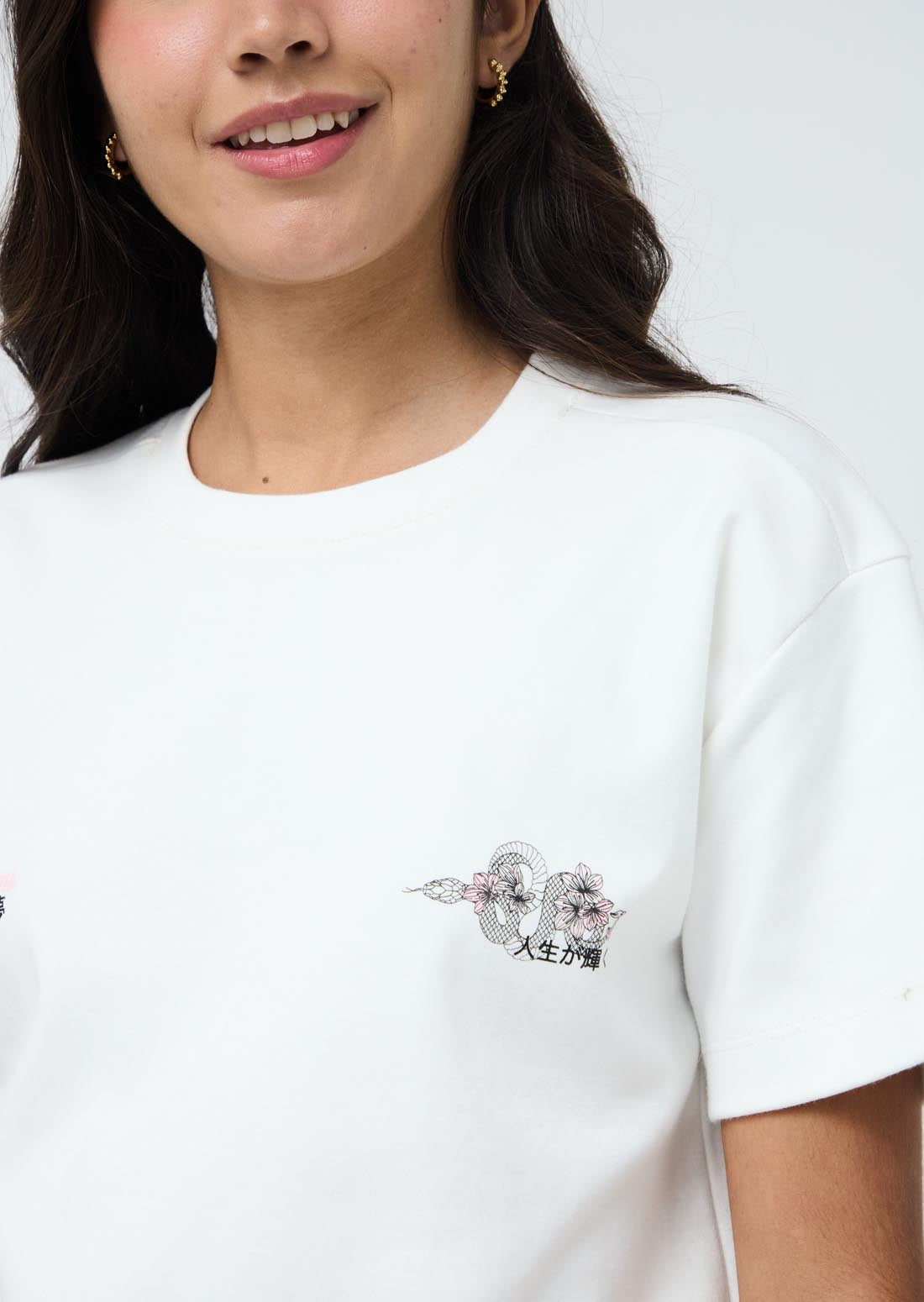 Camiseta marfil con estampado en ambas caras para jóvenes
