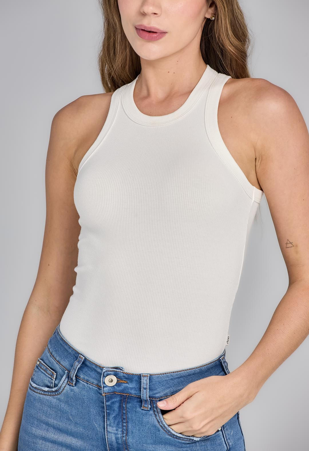Camiseta manga sisa, color marfil1, básica y en rib para mujeres.