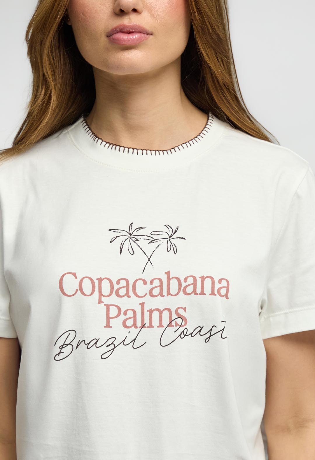 Camiseta marfil estampada para mujeres