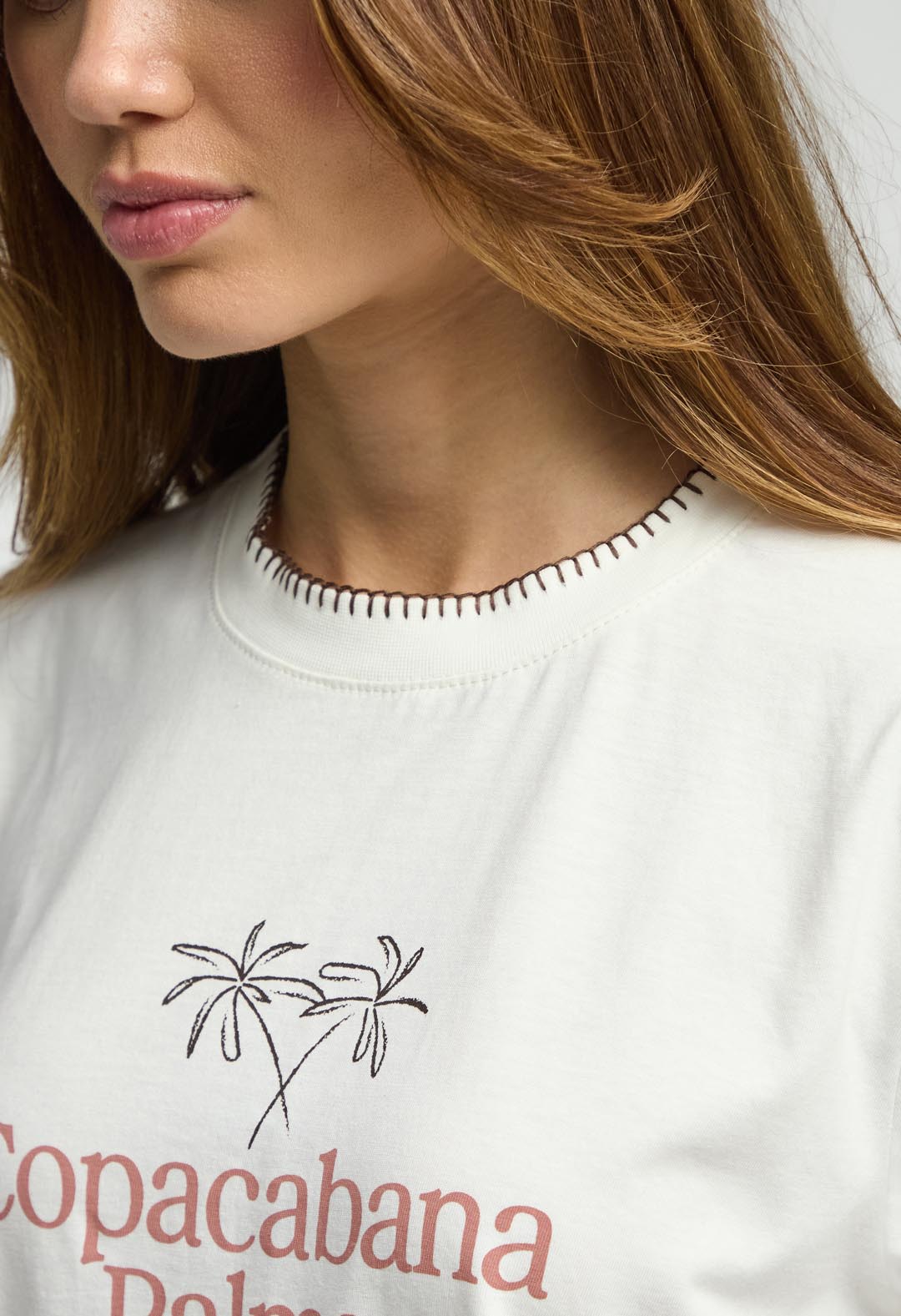 Camiseta marfil estampada para mujeres.