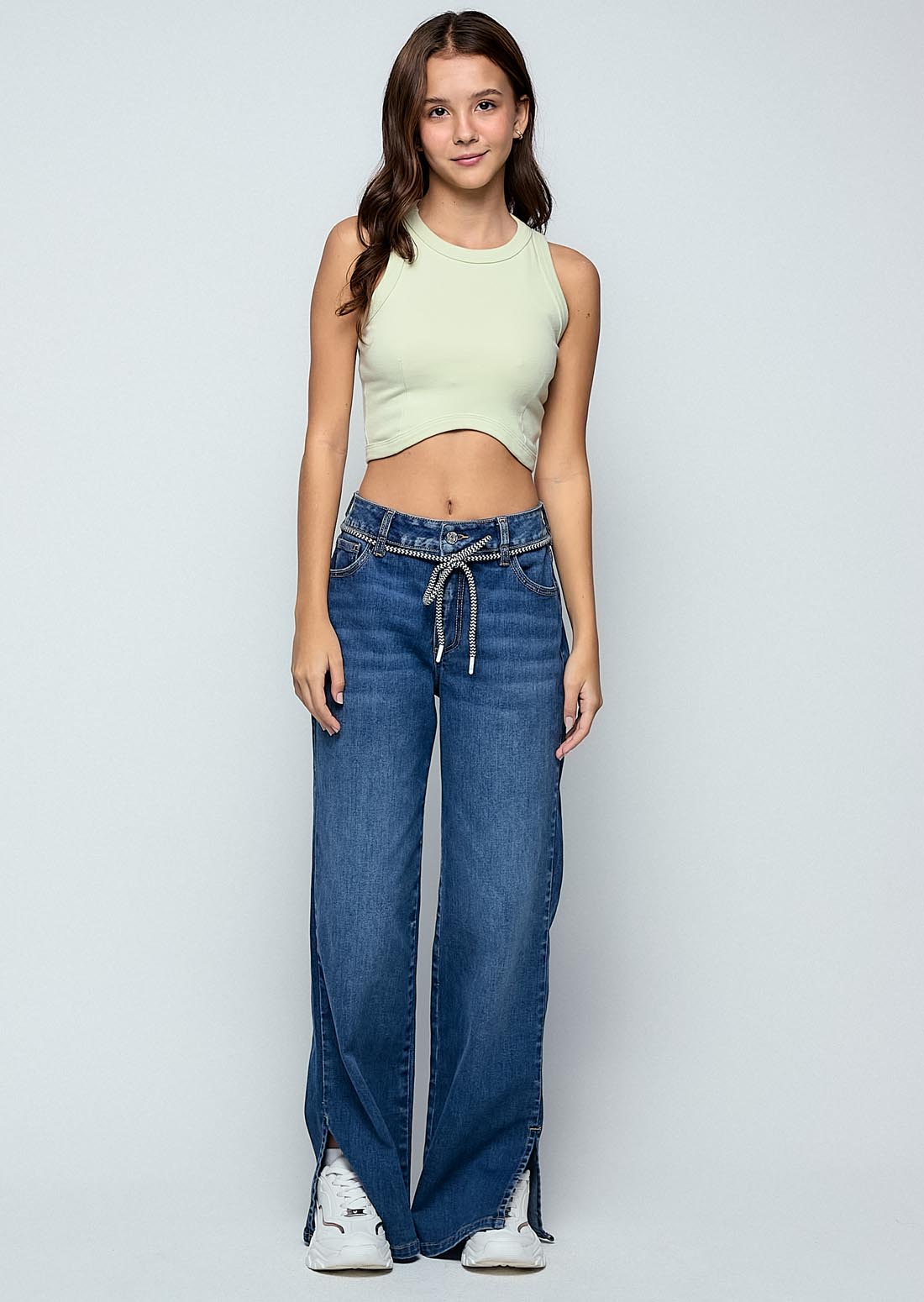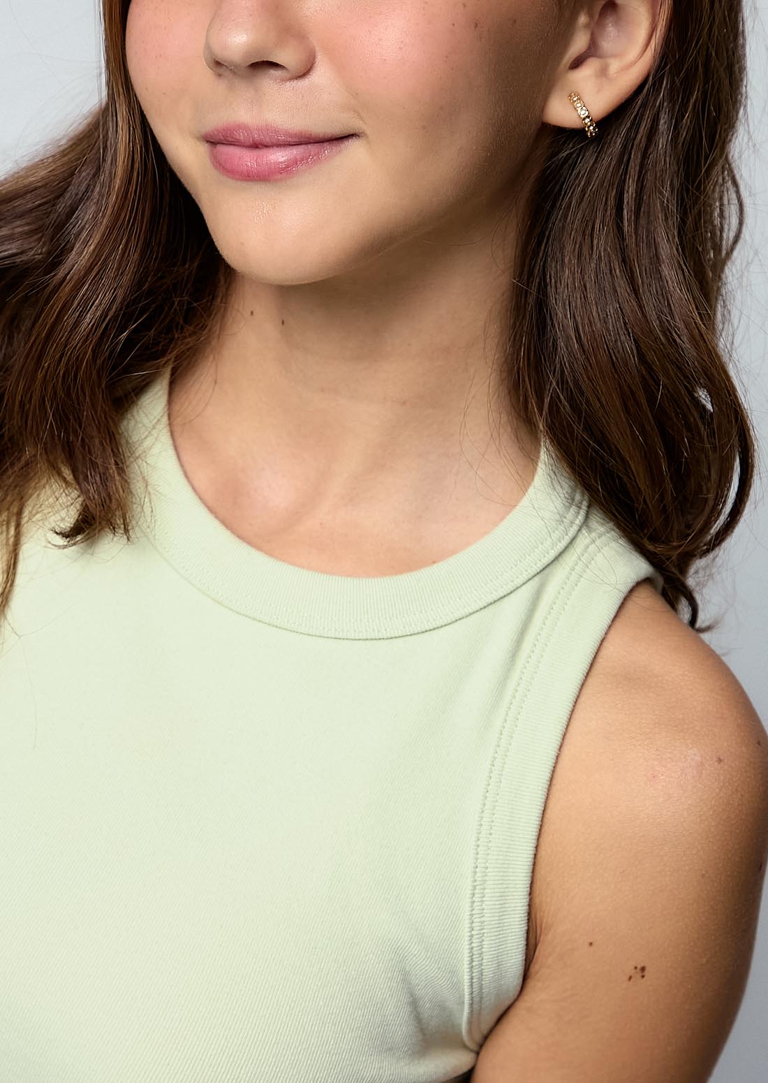 Camiseta manga sisa, color menta, fondo entero, largo crop y pinzas decorativas para jóvenes.