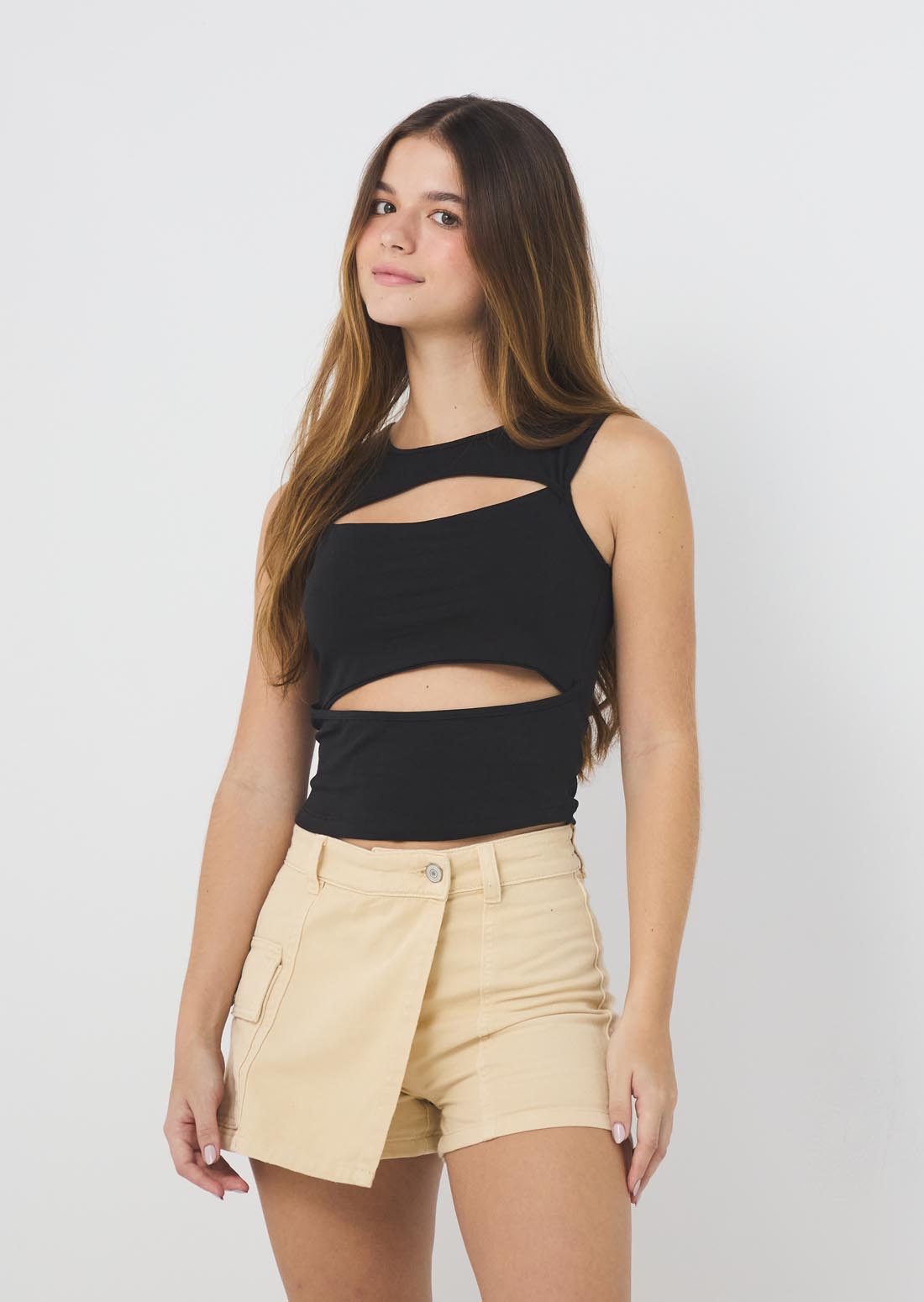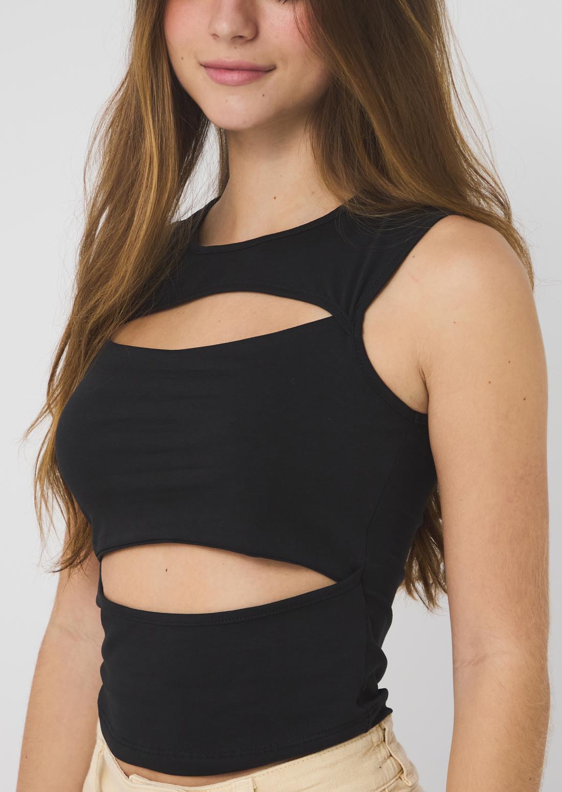 Camiseta negra con abertura para jóvenes