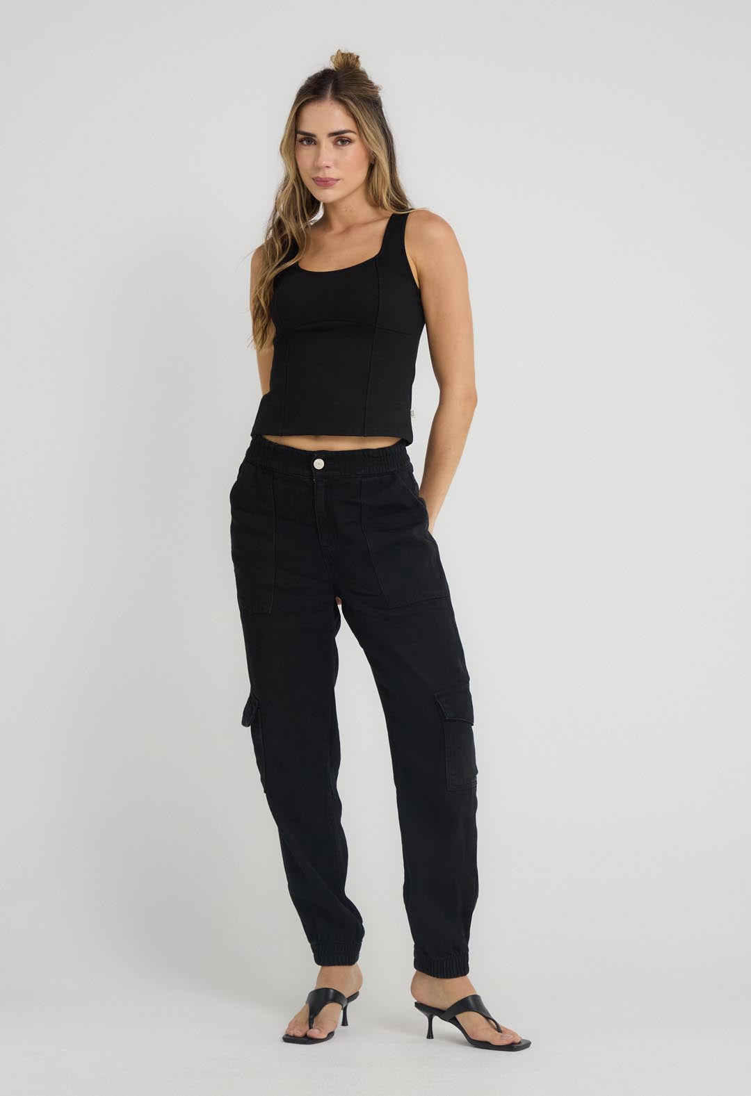 Camiseta negra con cortes para mujer.