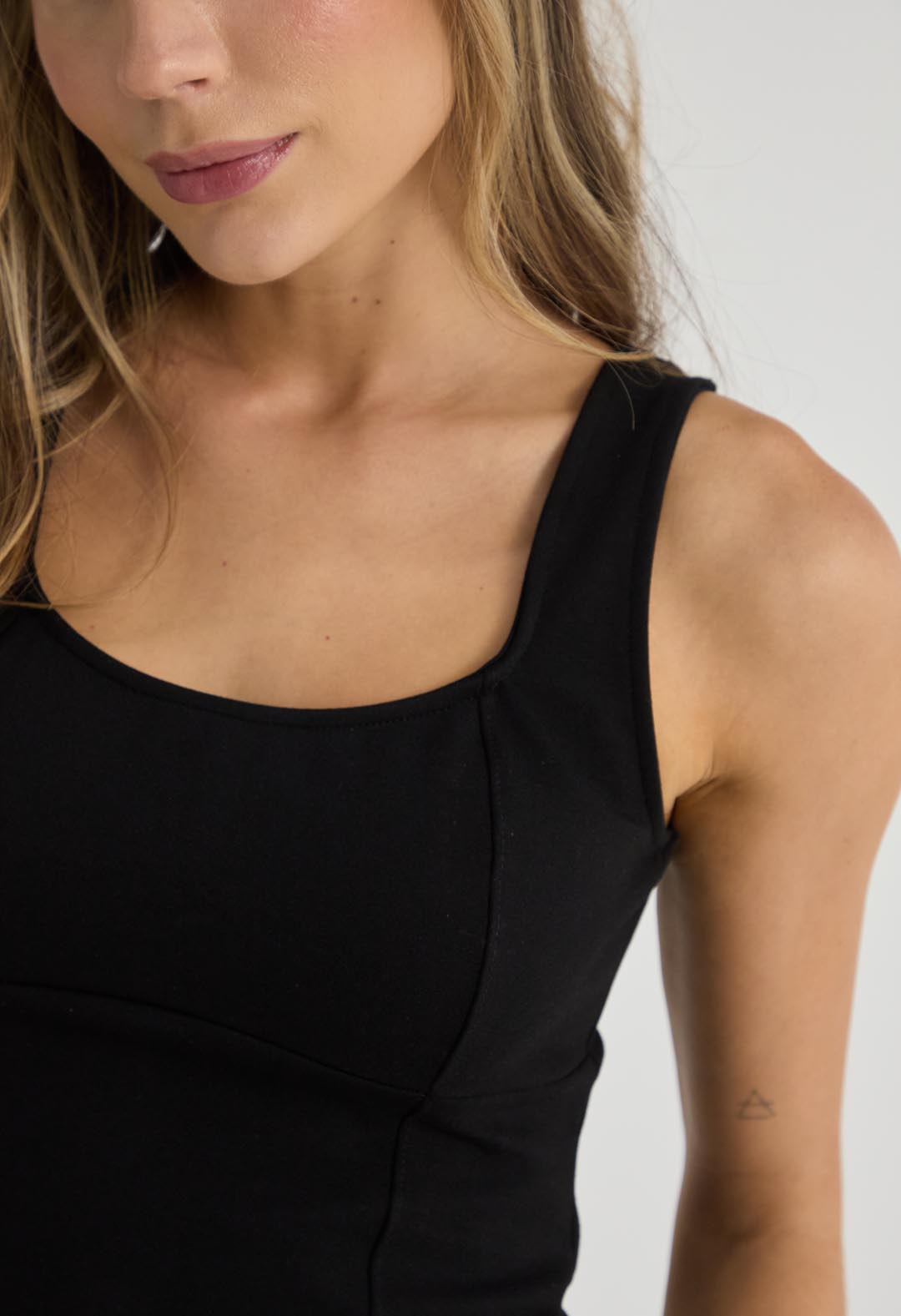 Camiseta manga sisa, color negro y cortes en frente para mujeres.