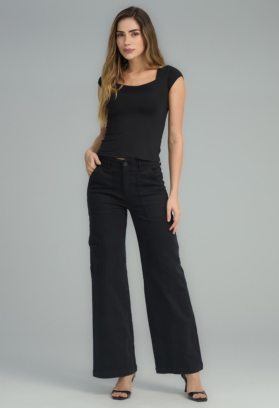 Camiseta manga corta, color negro, fondo entero y escote corazón para mujeres.