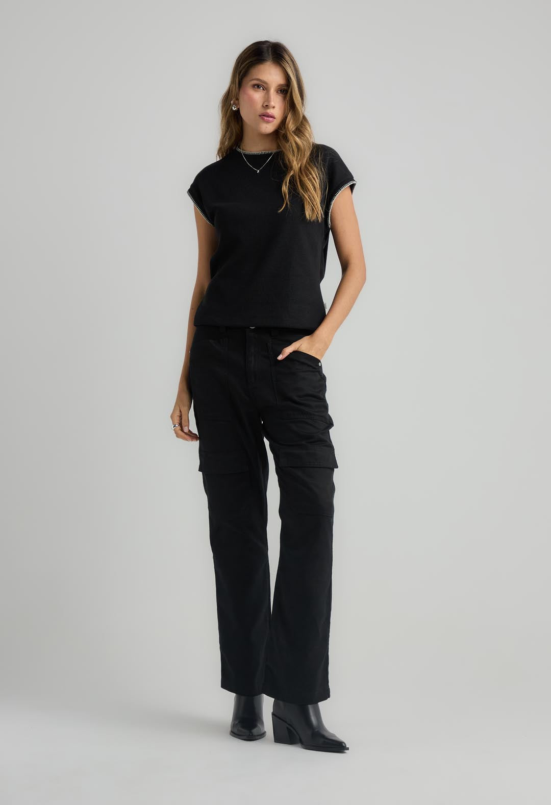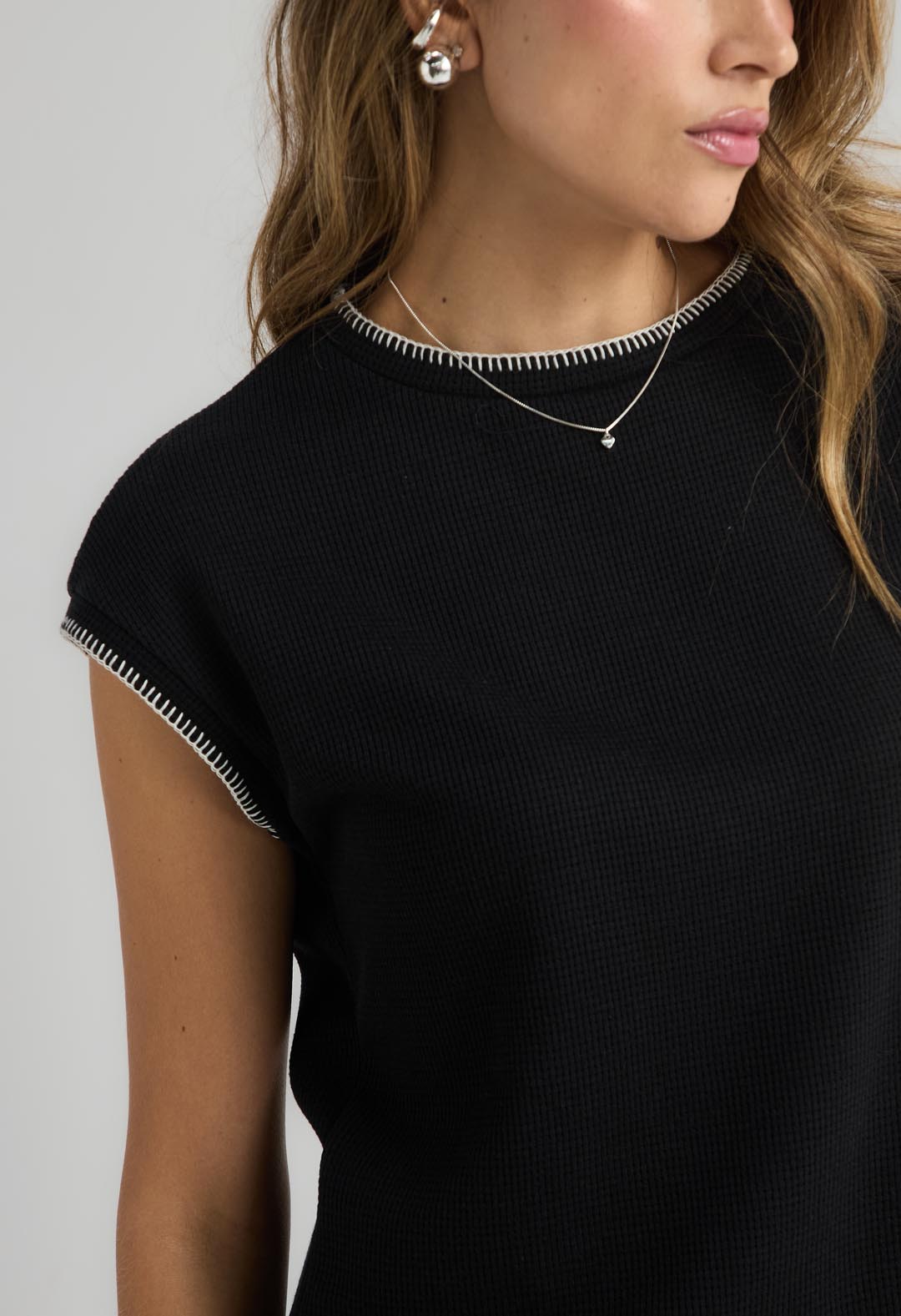 Camiseta negra en tela galleta para mujeres