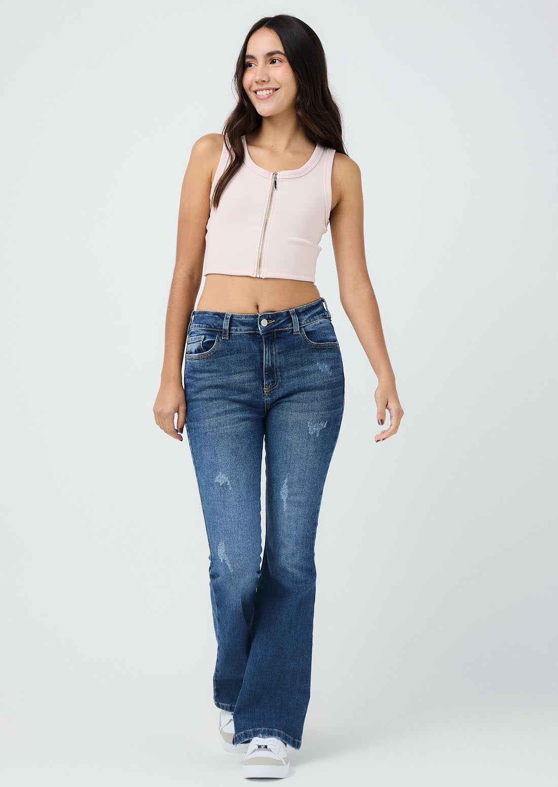 Camiseta manga corta, color palo de rosa, cierre en frente y fondo entero para jóvenes.