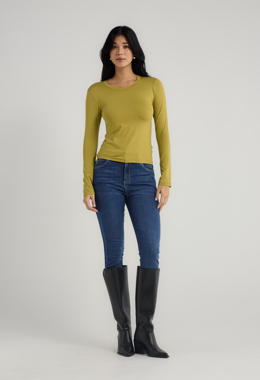 Camiseta manga larga, color pistacho, cuello redondo y fondo entero para mujeres.
