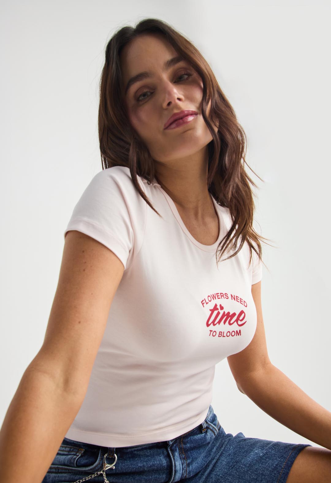 Camiseta rosa claro manga corta para mujer