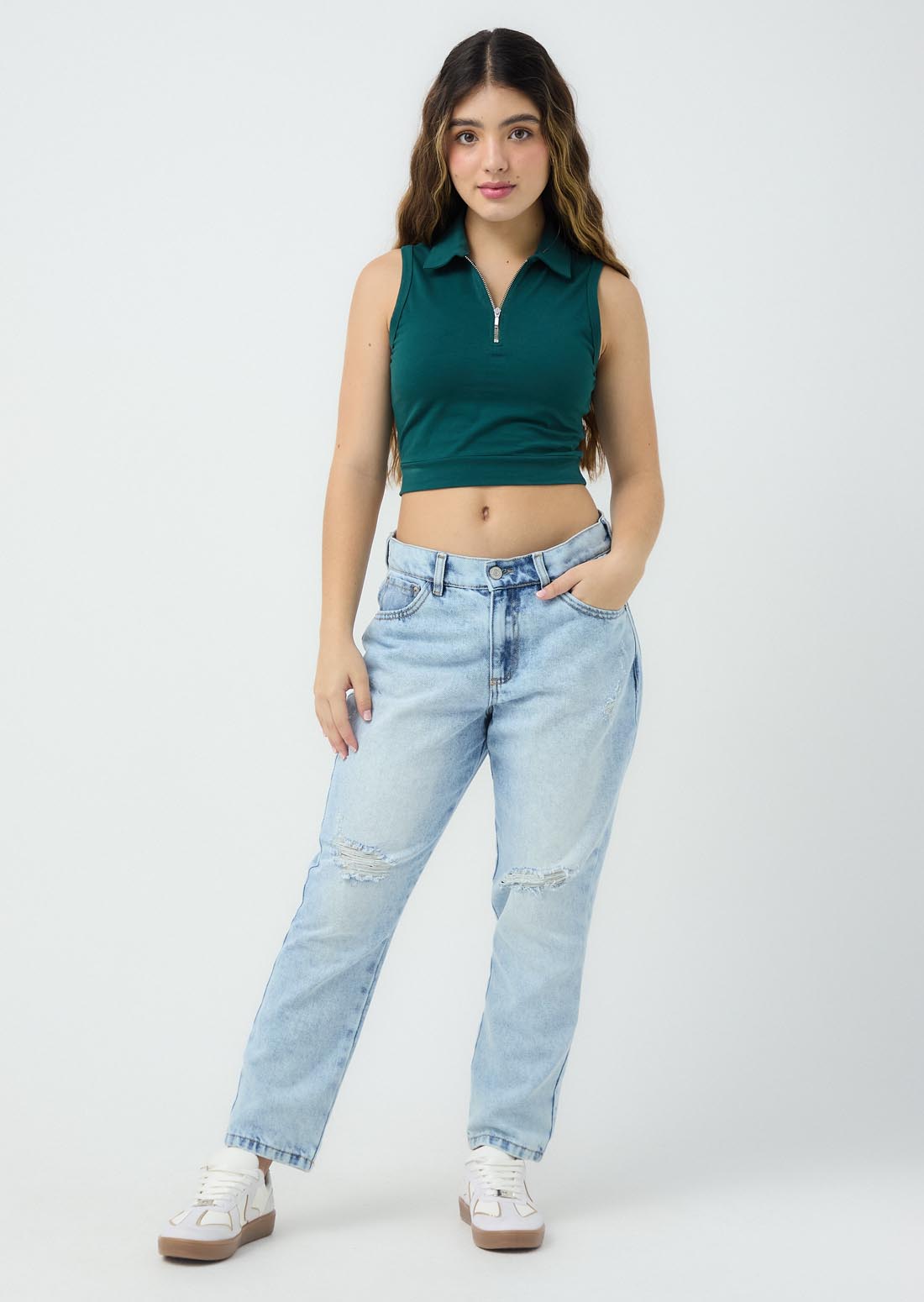 Camisetas manga sisa, color verde botella y cierre frente para jóvenes.