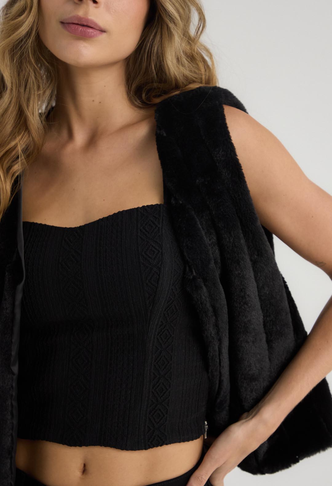 Chaleco manga sisa, color negro, en peluche y fondo entero para mujer.