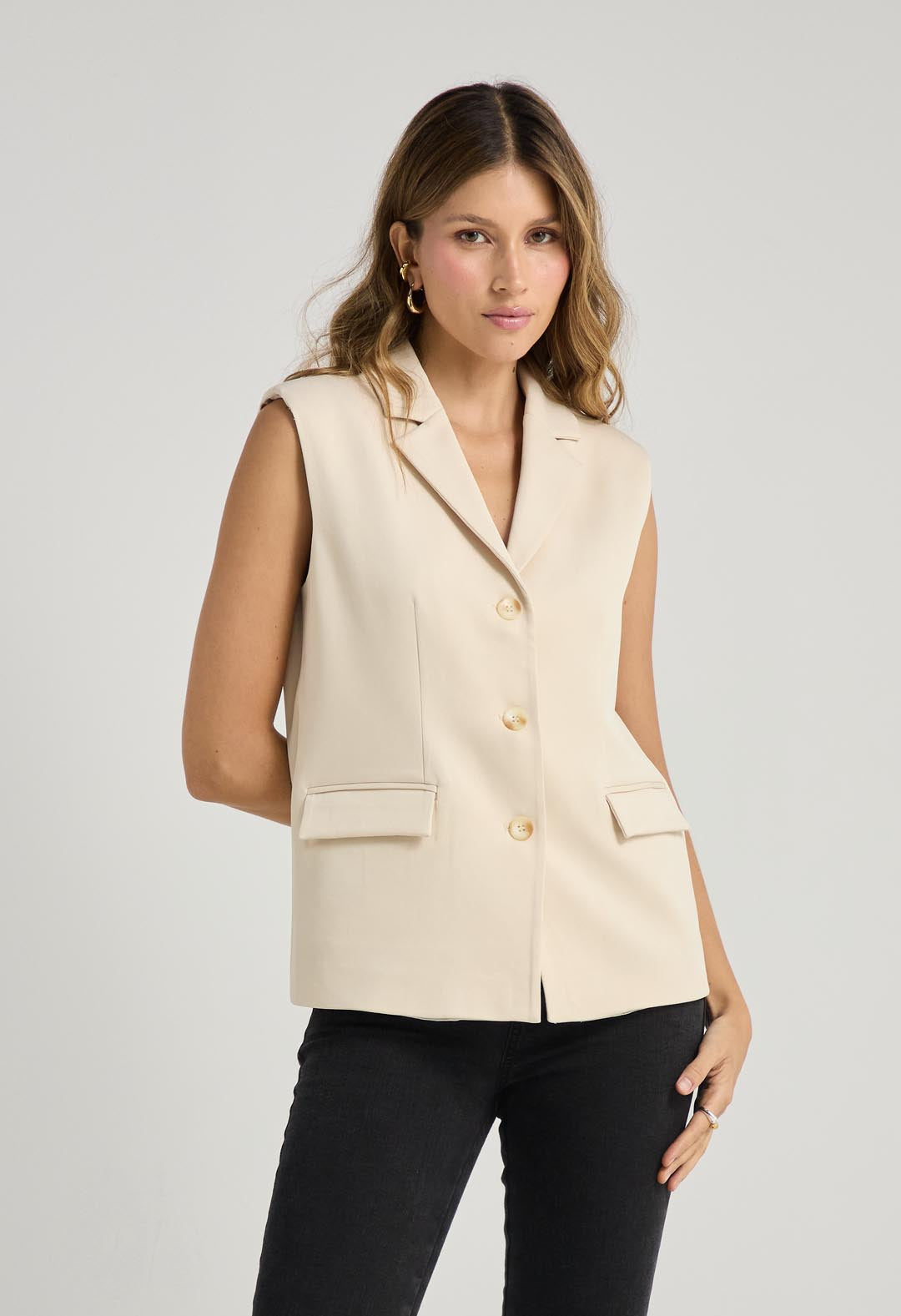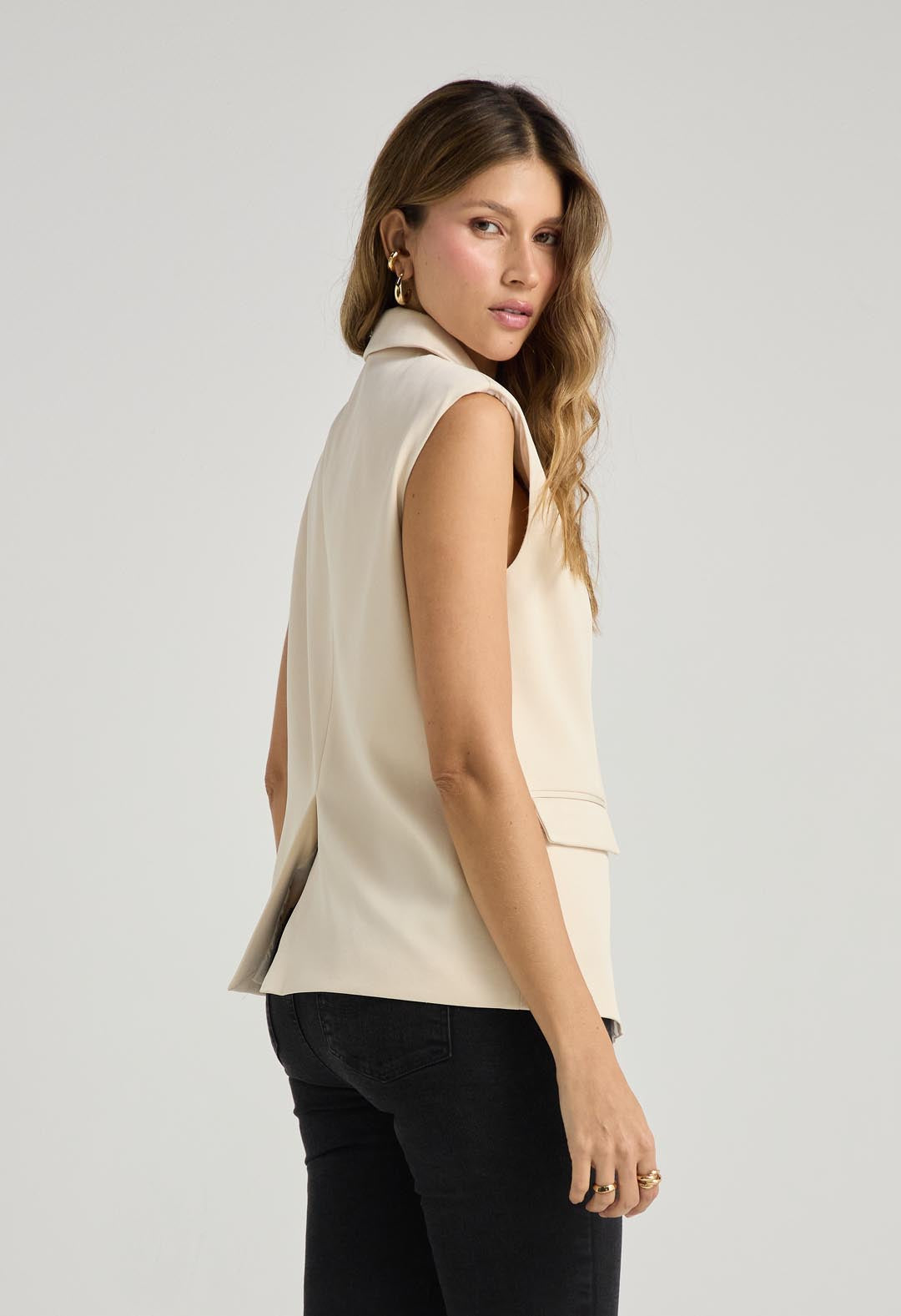 Chaleco marfil tipo blazer para mujeres