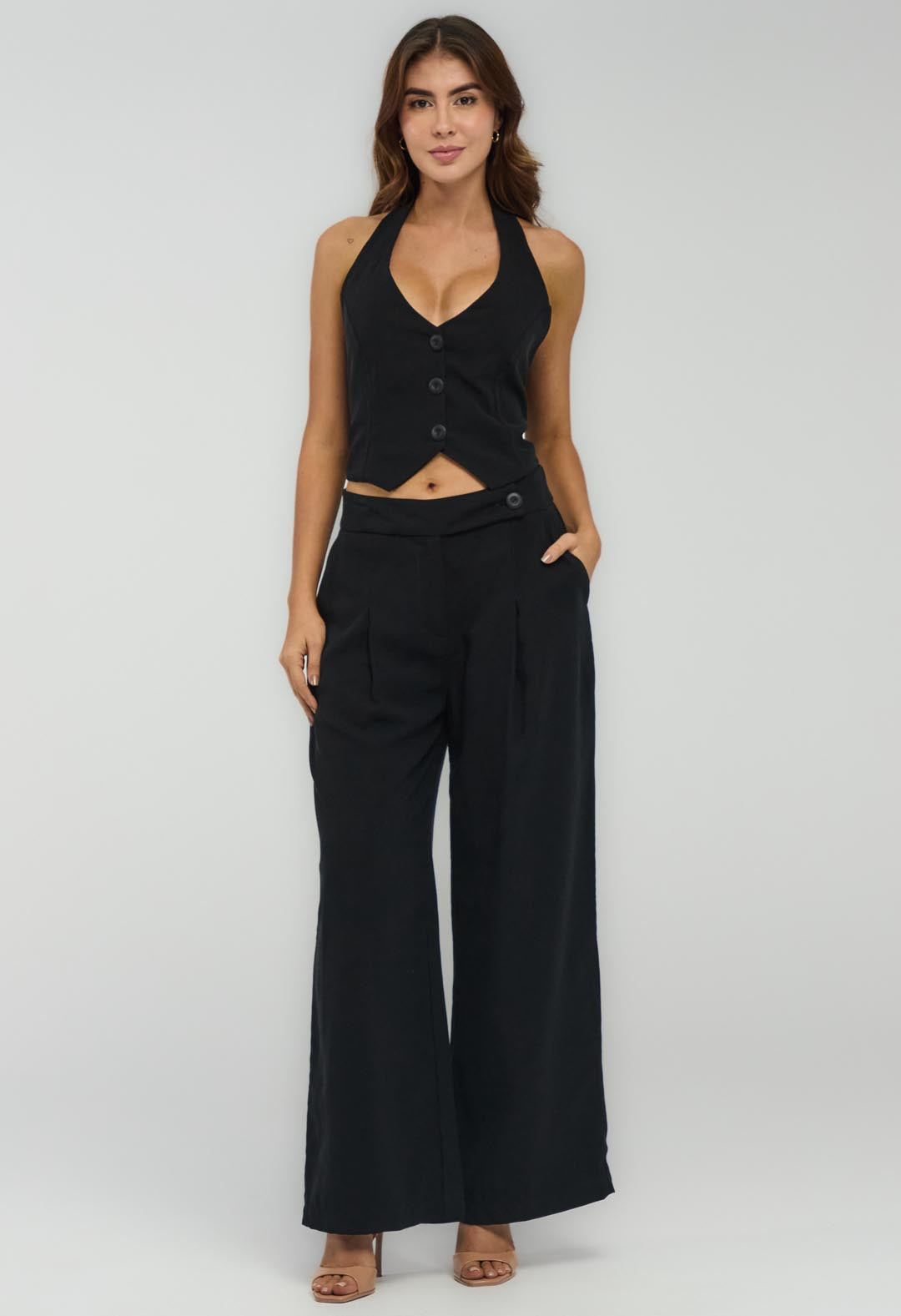 Chaleco halter, color negro, espalda descubierta y largo crop para mujeres.