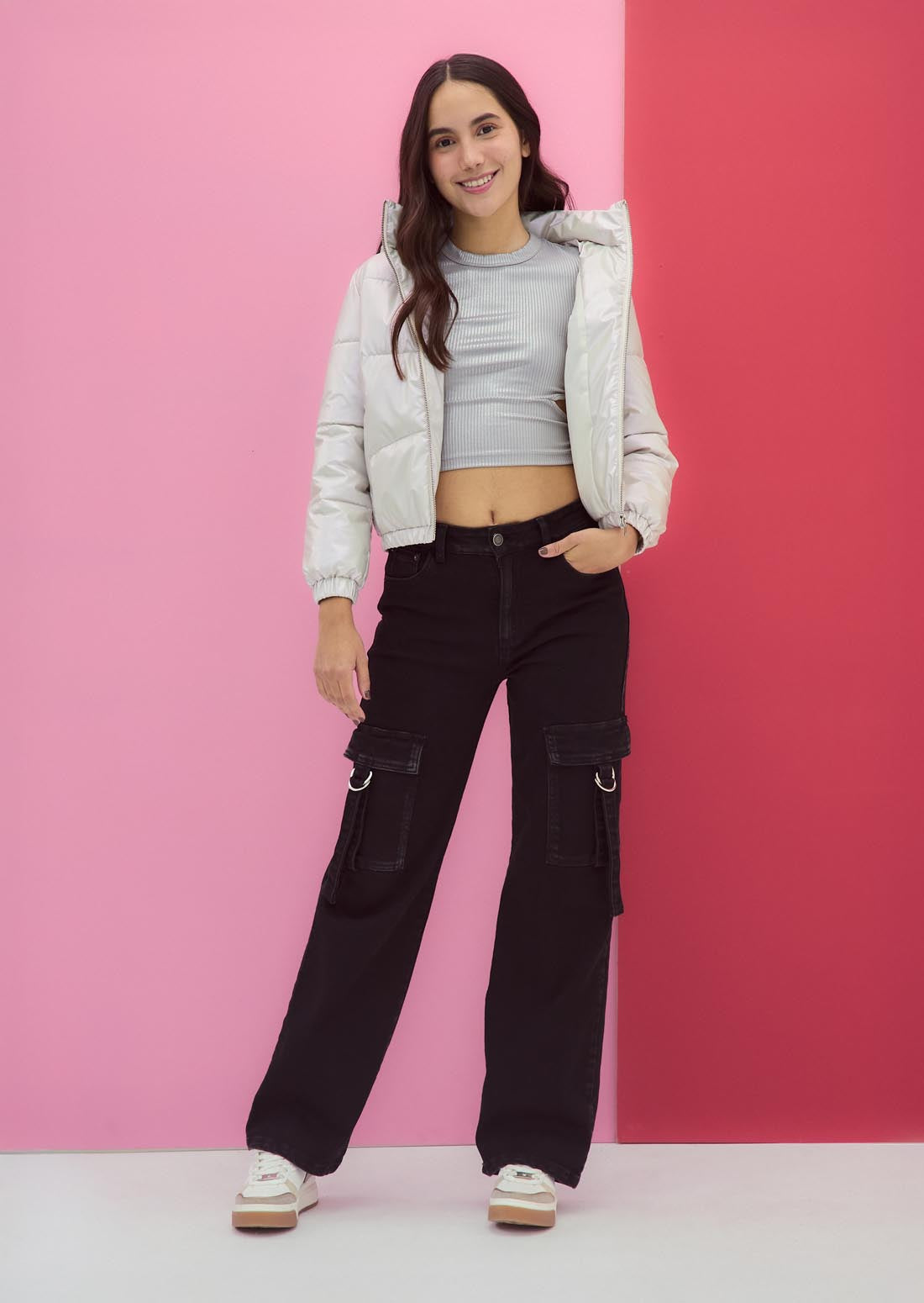 Chaqueta acolchada, manga larga, tornasol y con capucha para jóvenes.