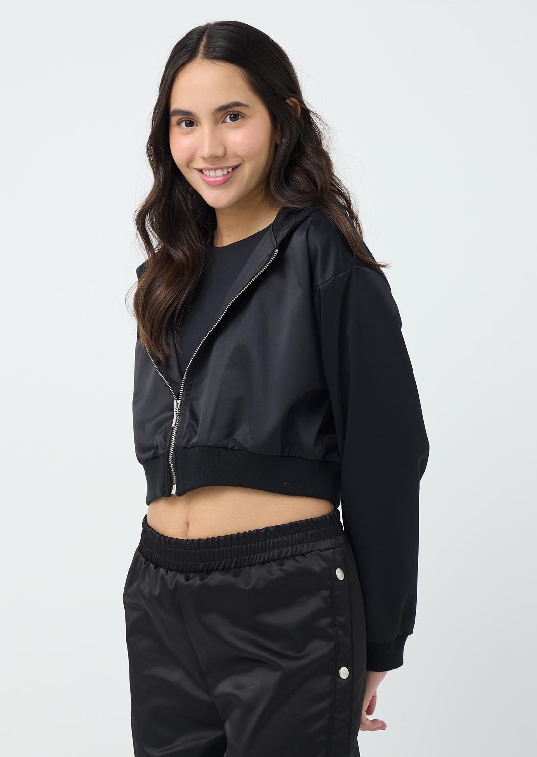 Chaqueta negra con puños en rectilíneo para jóvenes.
