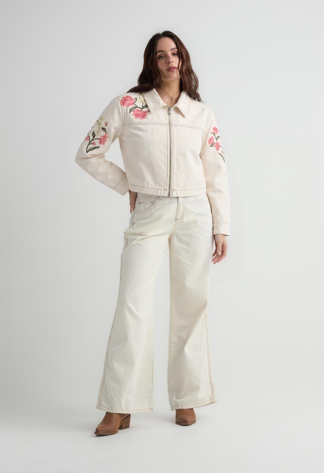 Chaqueta tono crudo estampada para mujer