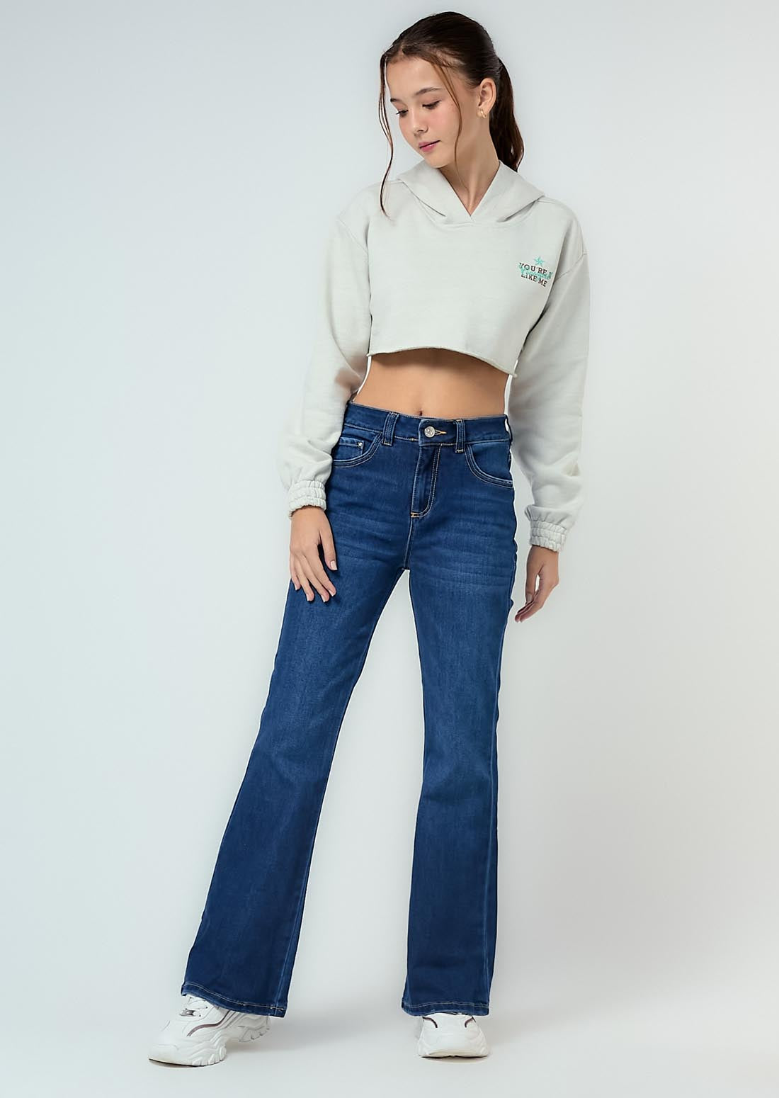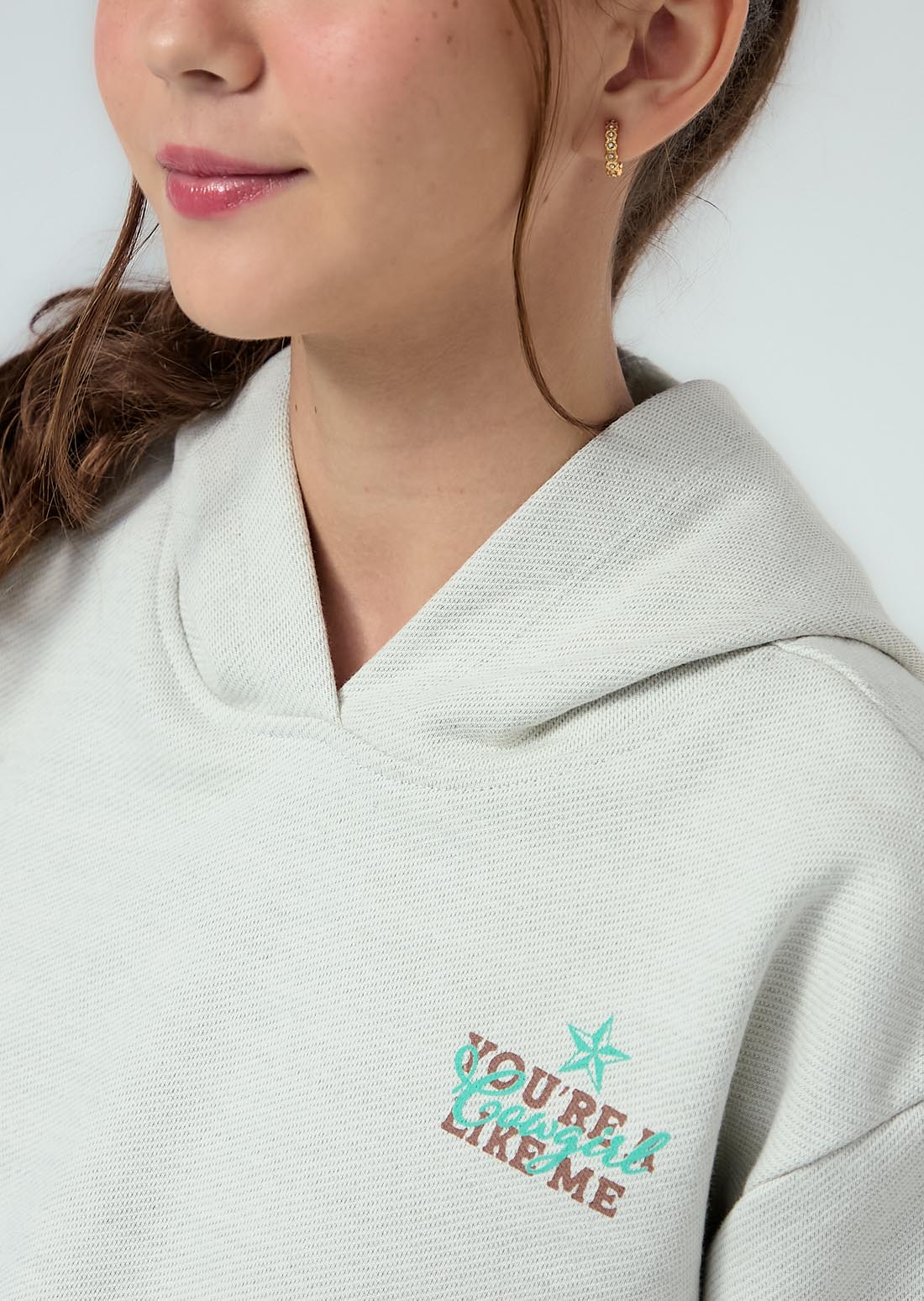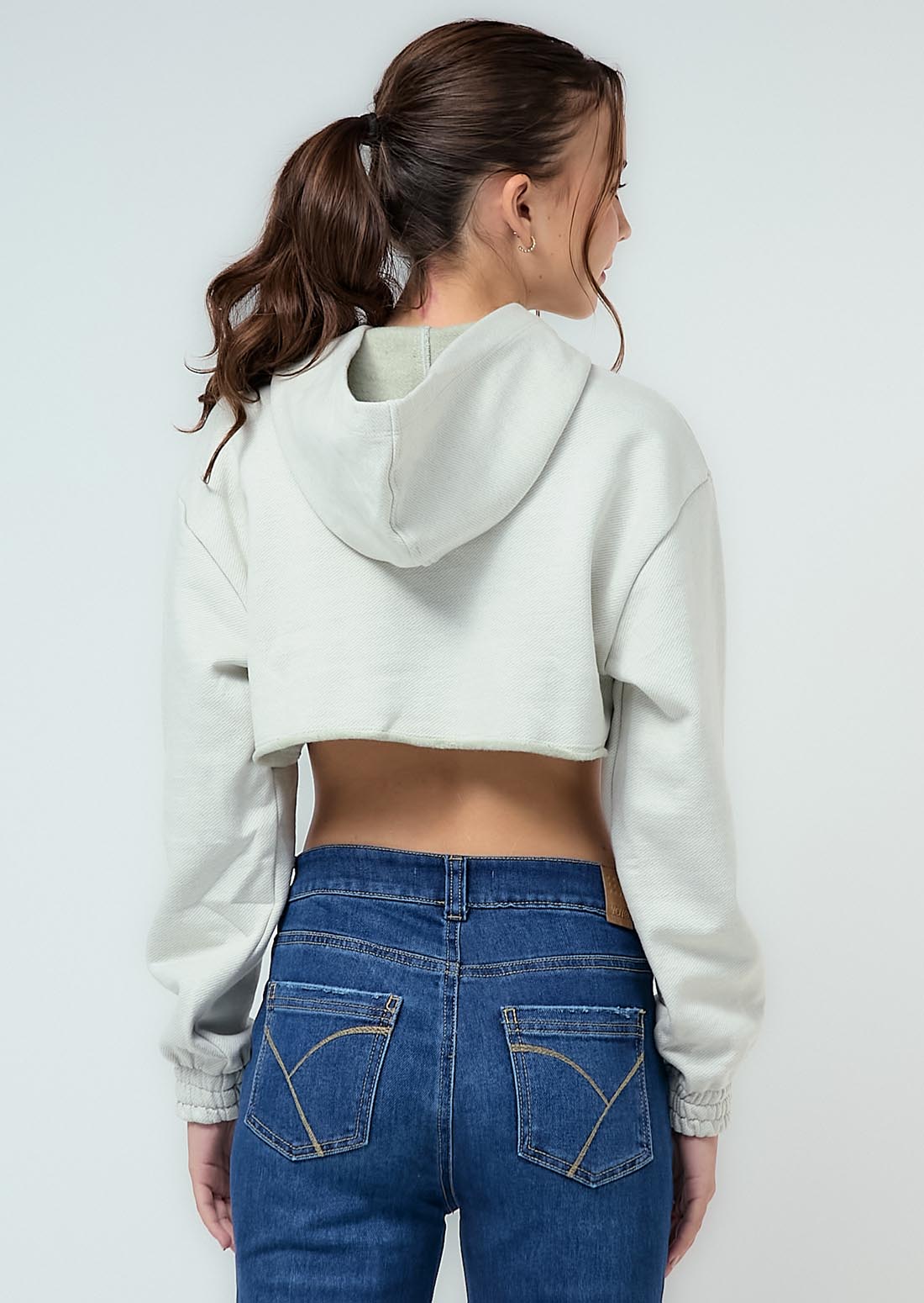 Chompa manga larga, color marfil, con bordado en frente y punto corazón para jóvenes.