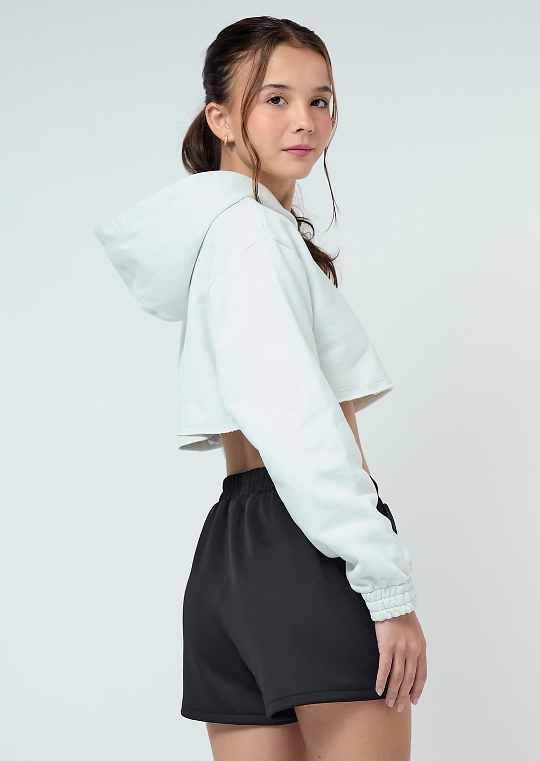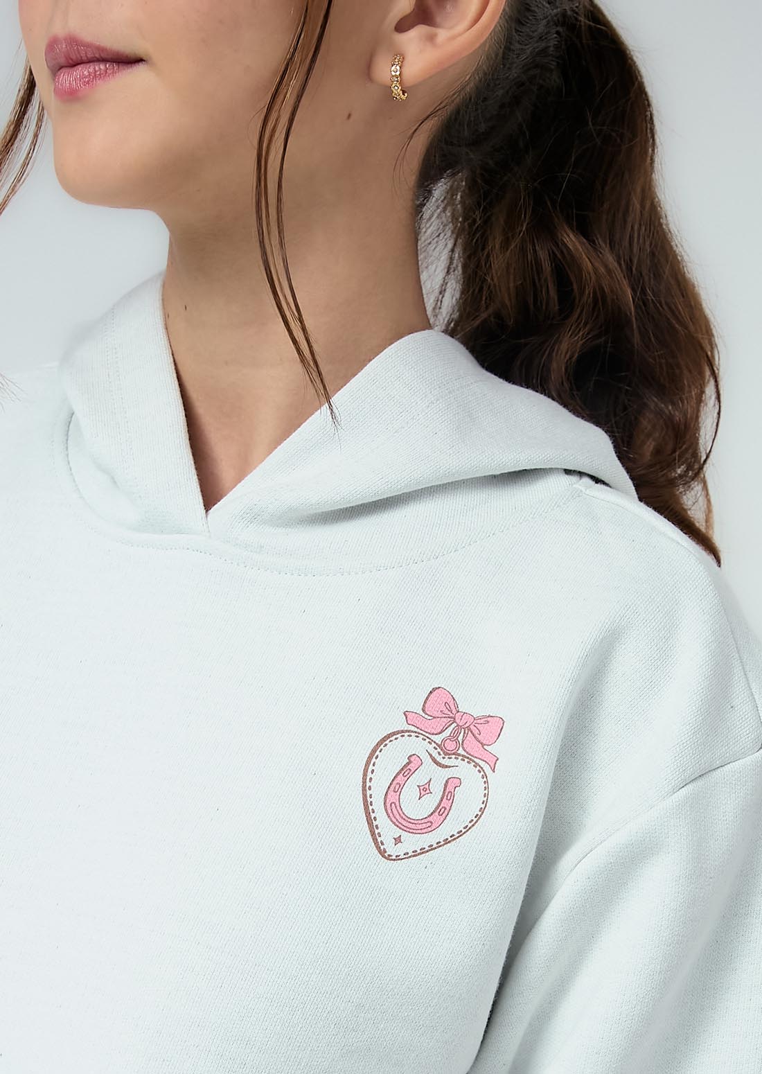 Chompa manga larga, color marfil1, con bordado en frente y punto corazón para jóvenes.