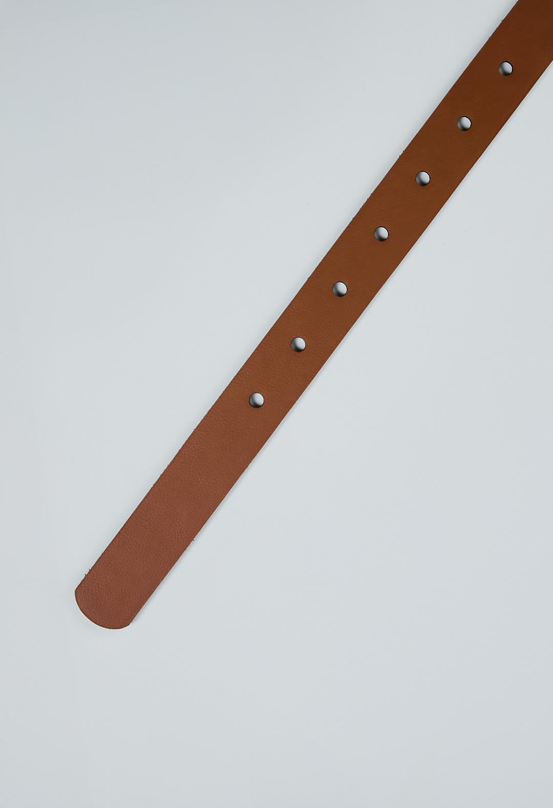 Cinturón color miel, doble faz y hebilla reversible para mujeres.