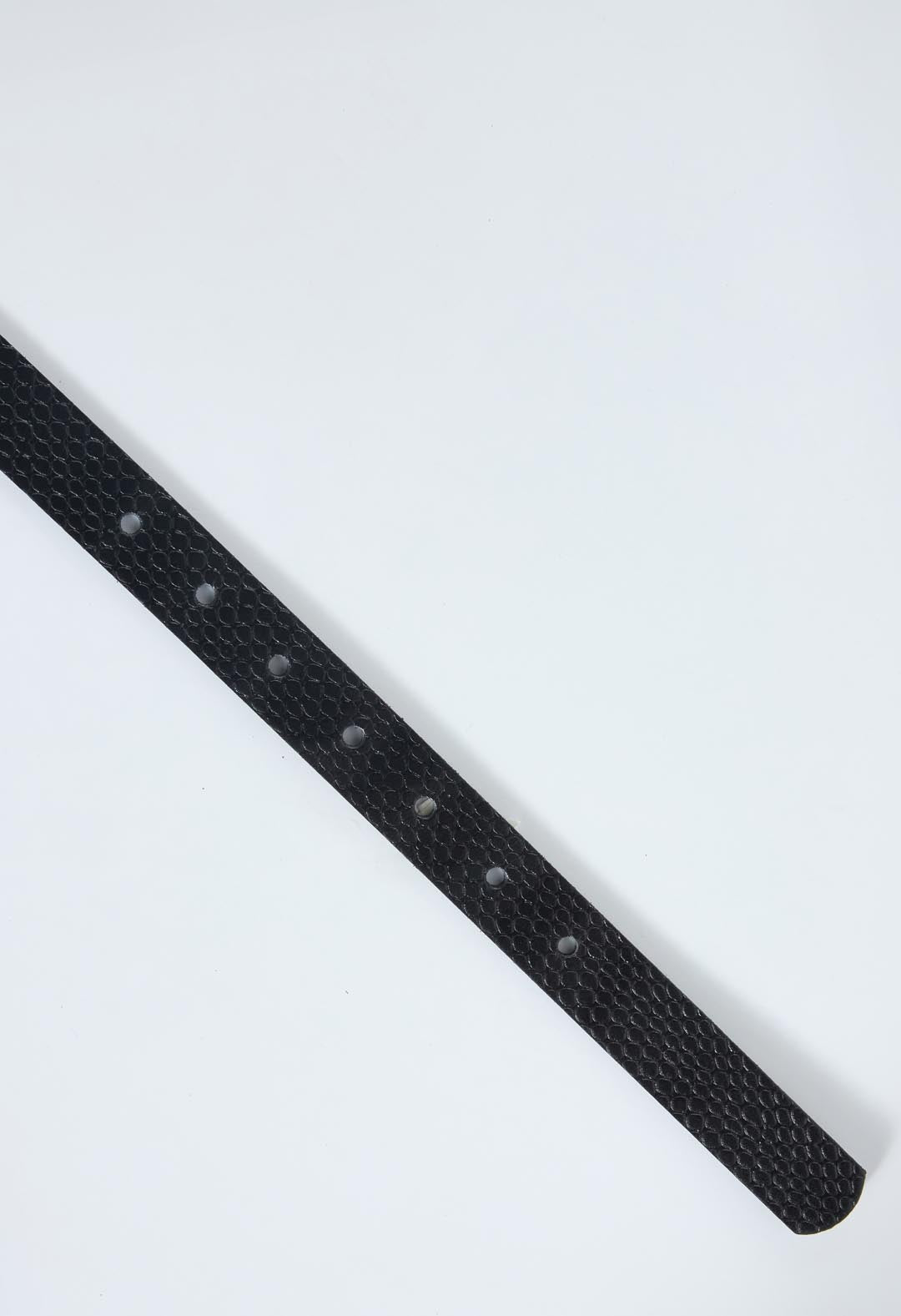 Cinturón con textura, color negro y hebilla texana para mujeres.