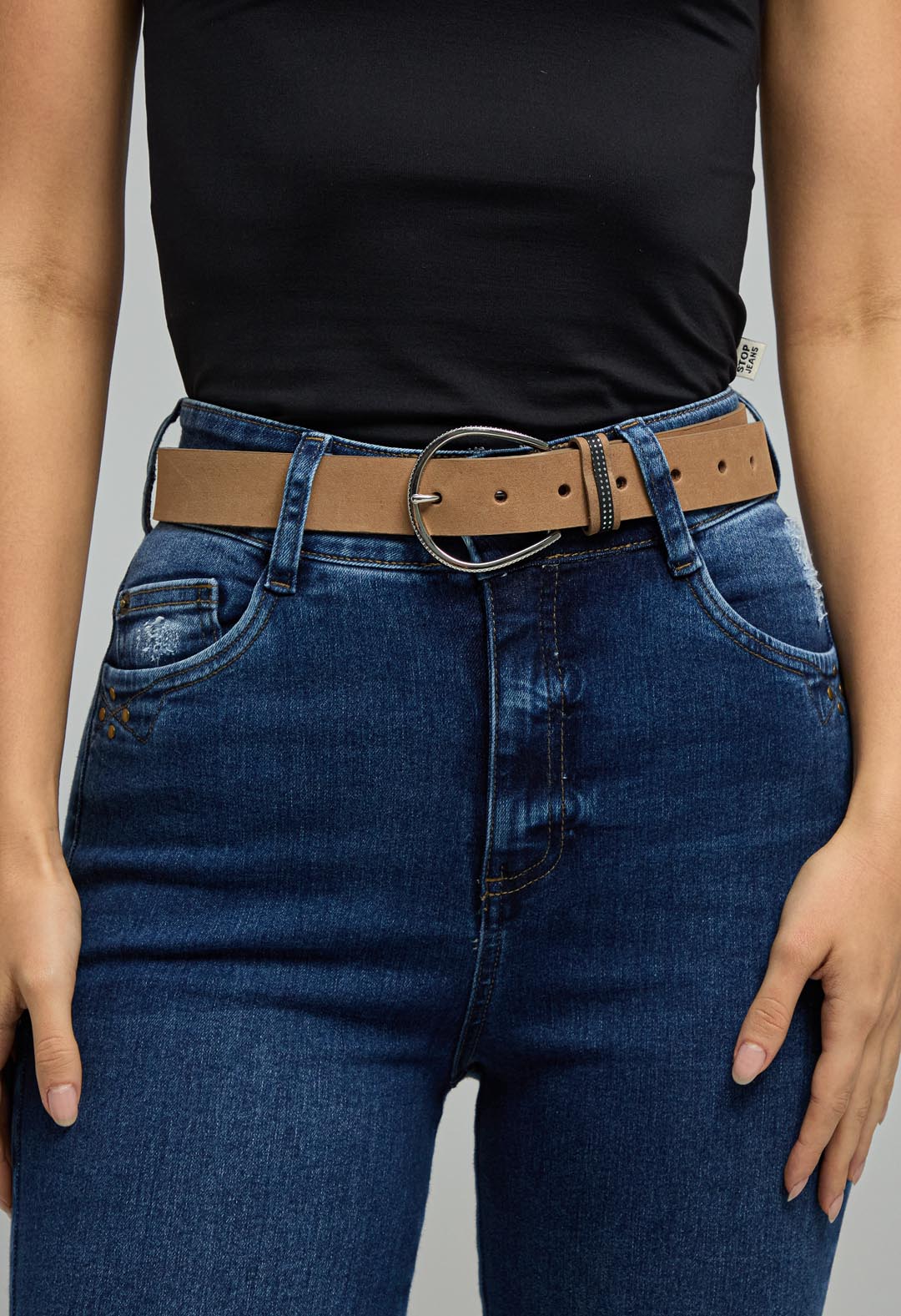 - Hebilla redonda que agrega un toque moderno.