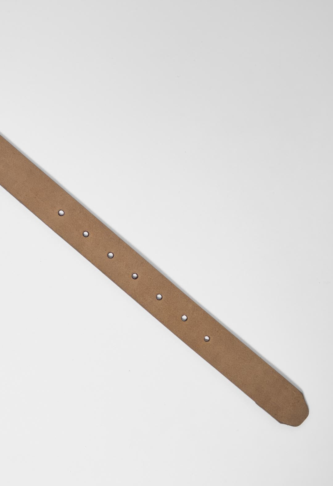 Cinturón en cuero, color taupe, hebilla redonda y aplique en pasador.