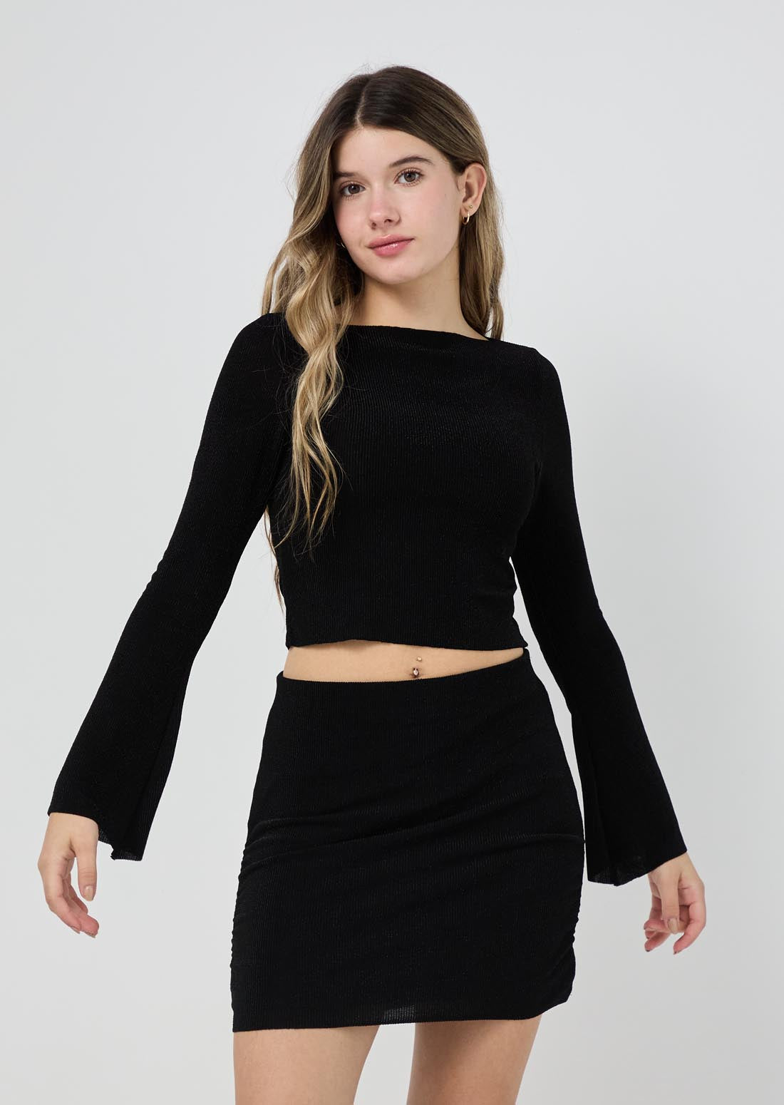 Conjunto negro blusa manga larga y falda para jóvenes.