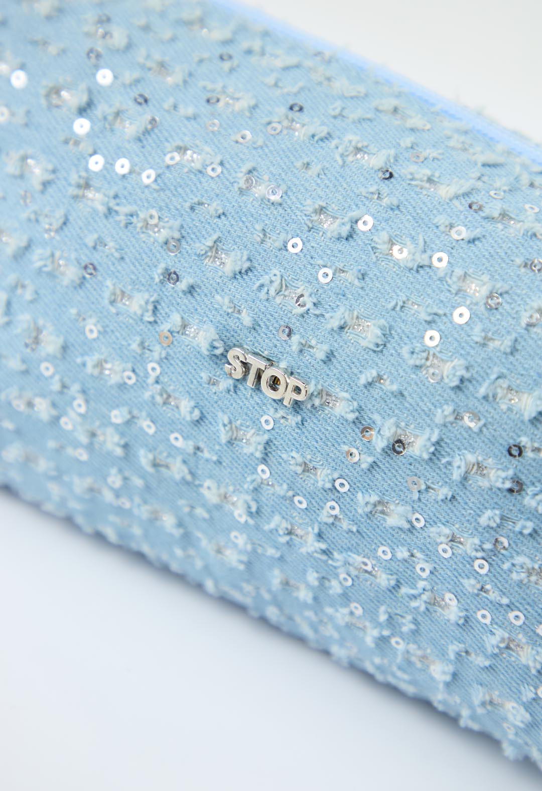 Cosmetiquera azul con brillos