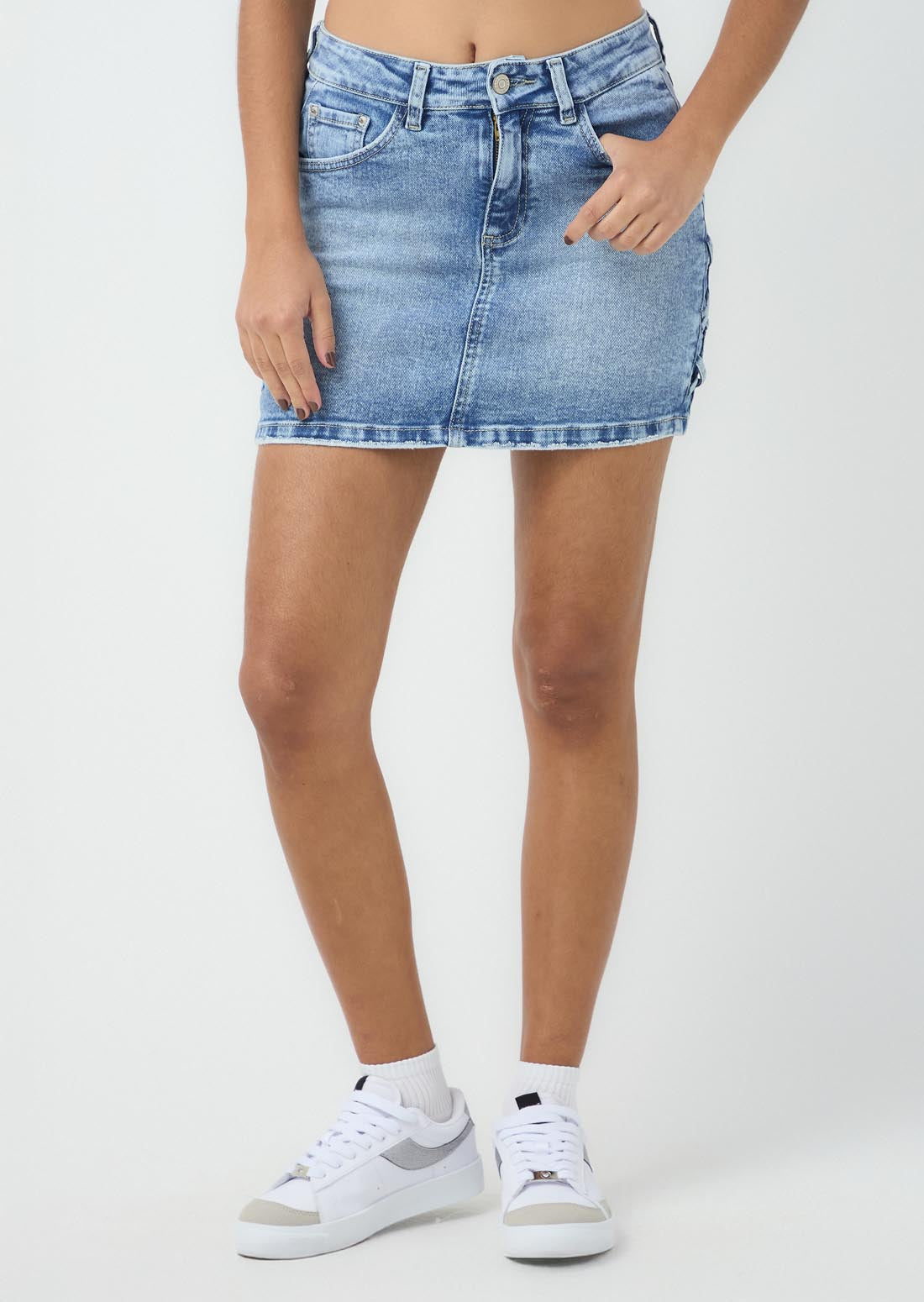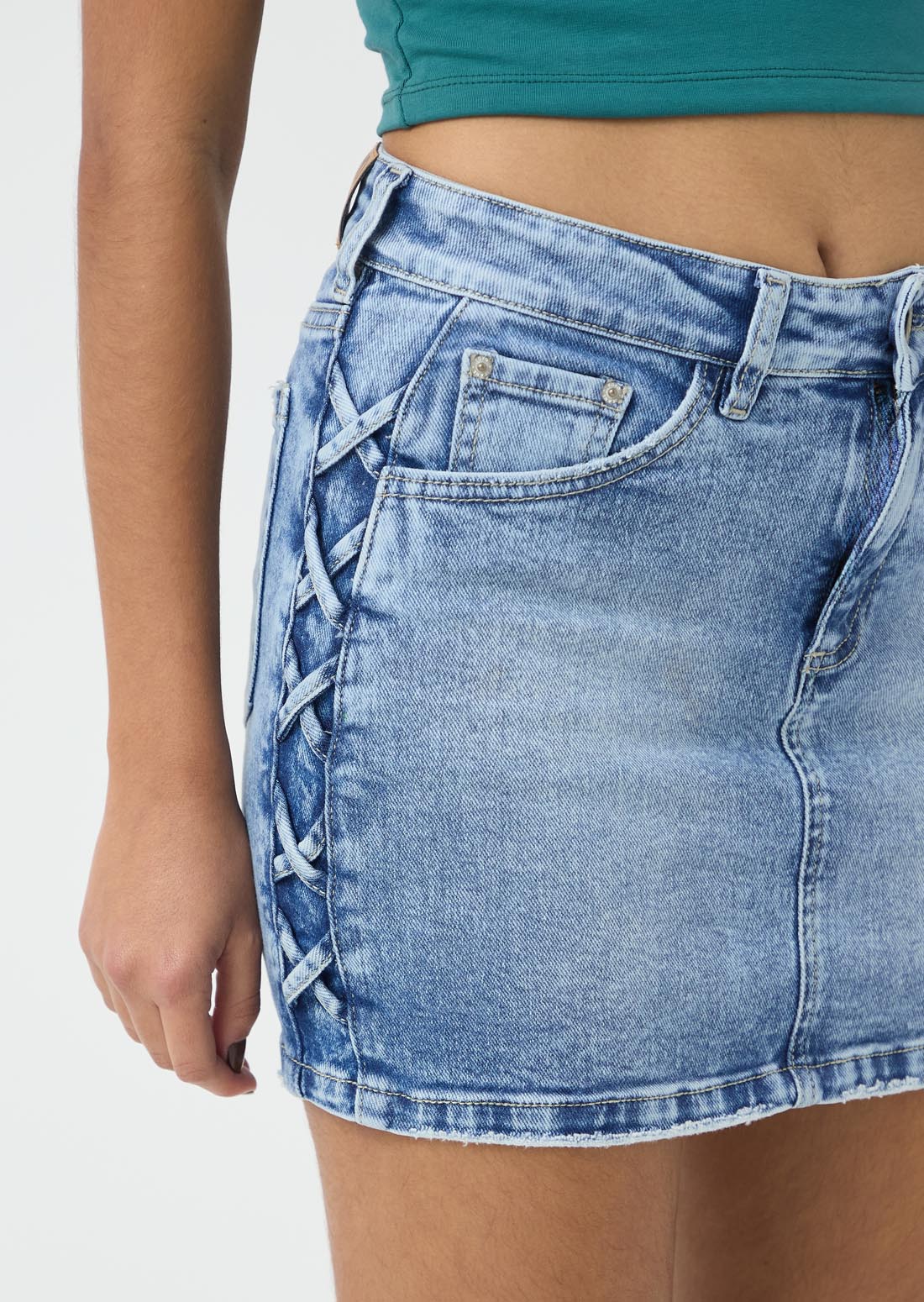 Falda tiro alto, lavado claro, con cruces en los costados y en denim para jóvenes.