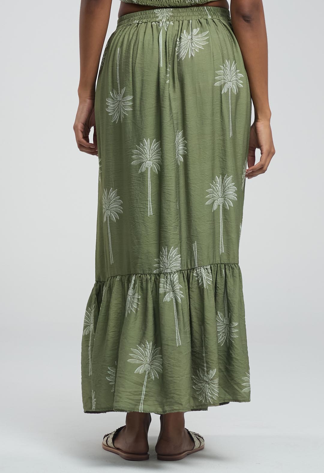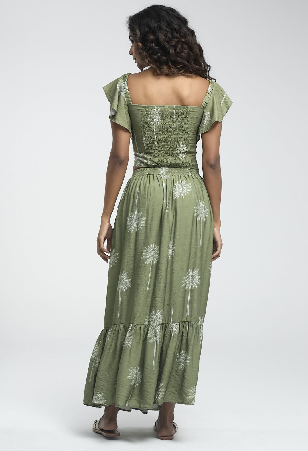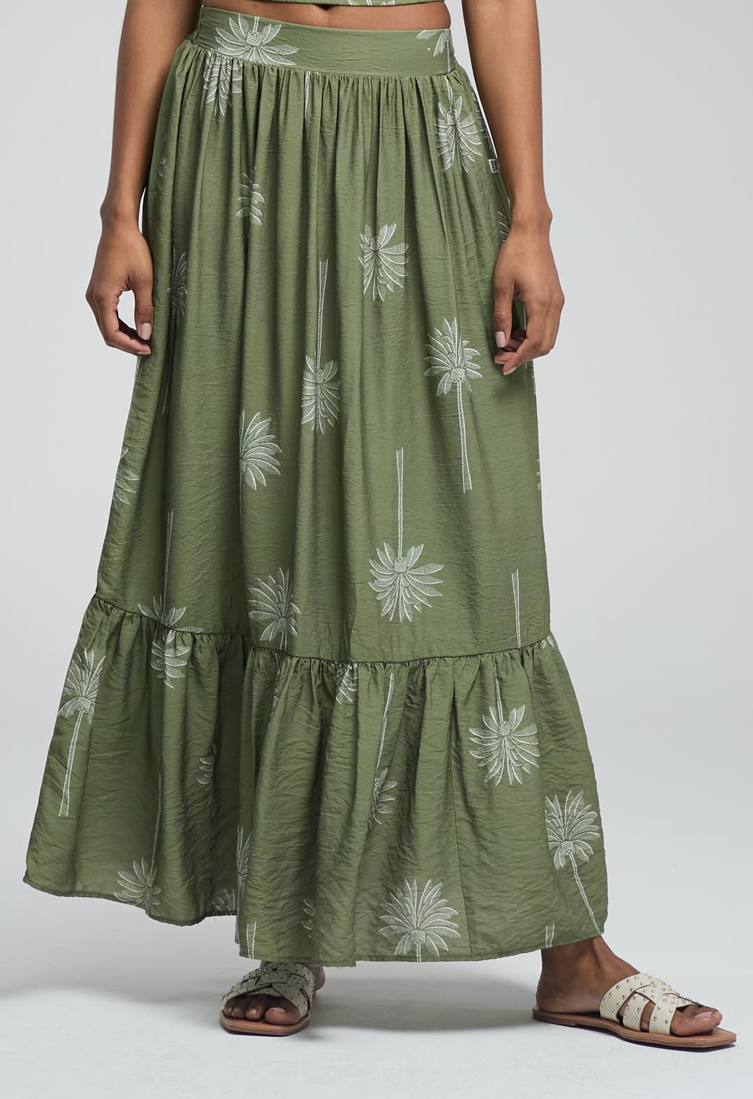 Falda larga, tiro alto, color pistacho y full print para mujeres.