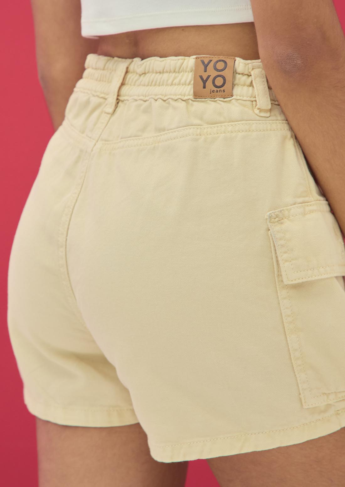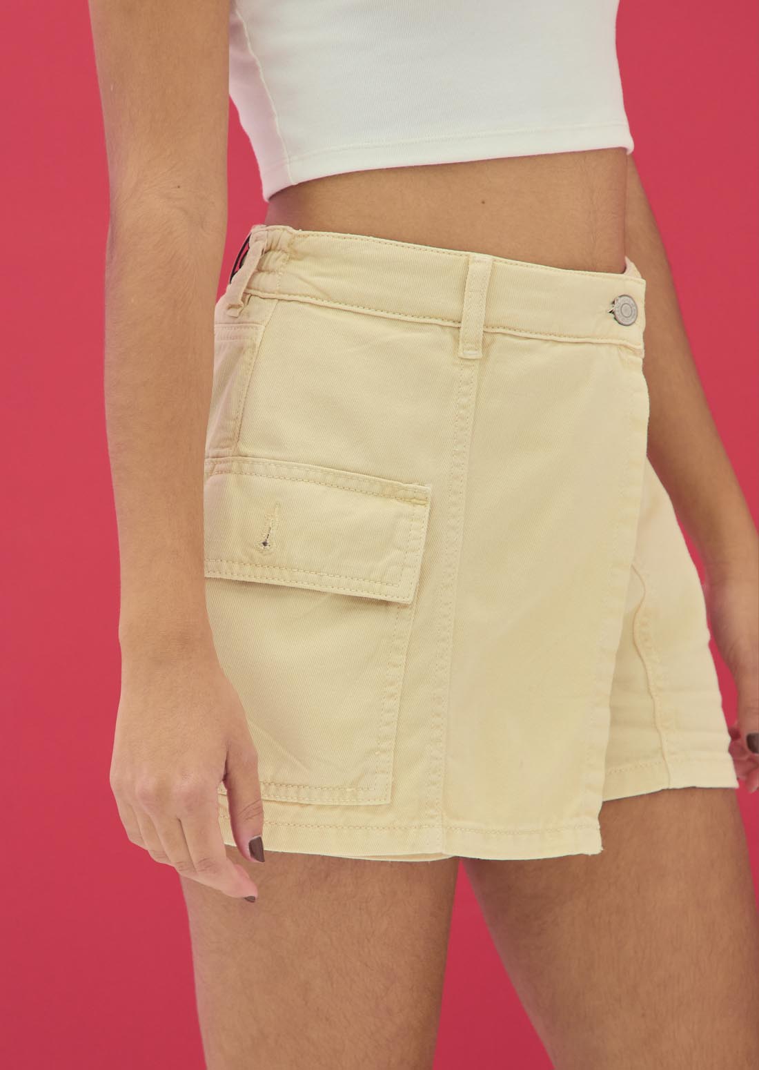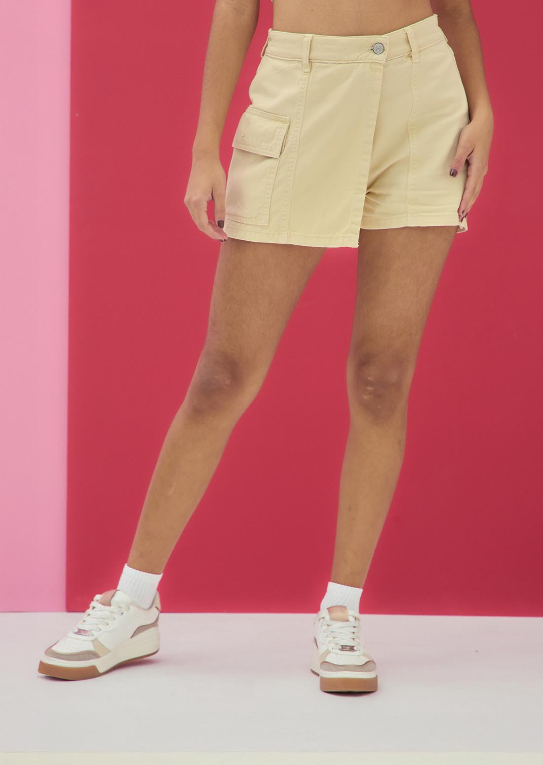 Falda short tiro alto, color kaky y fondo entero para jóvenes.