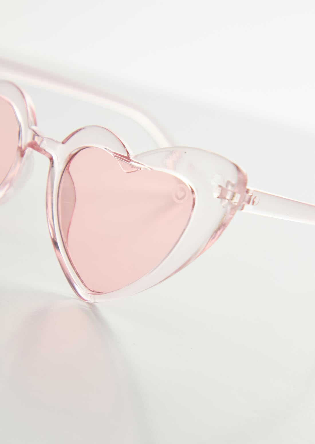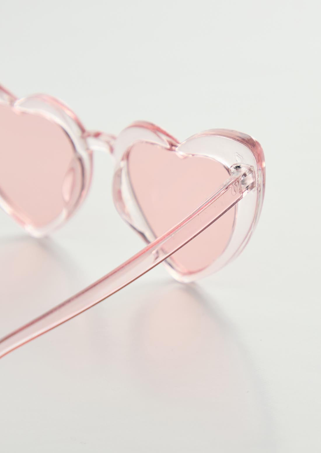 Gafas de sol, color rosa, en forma de corazón, marco traslúcido y protección UV400.