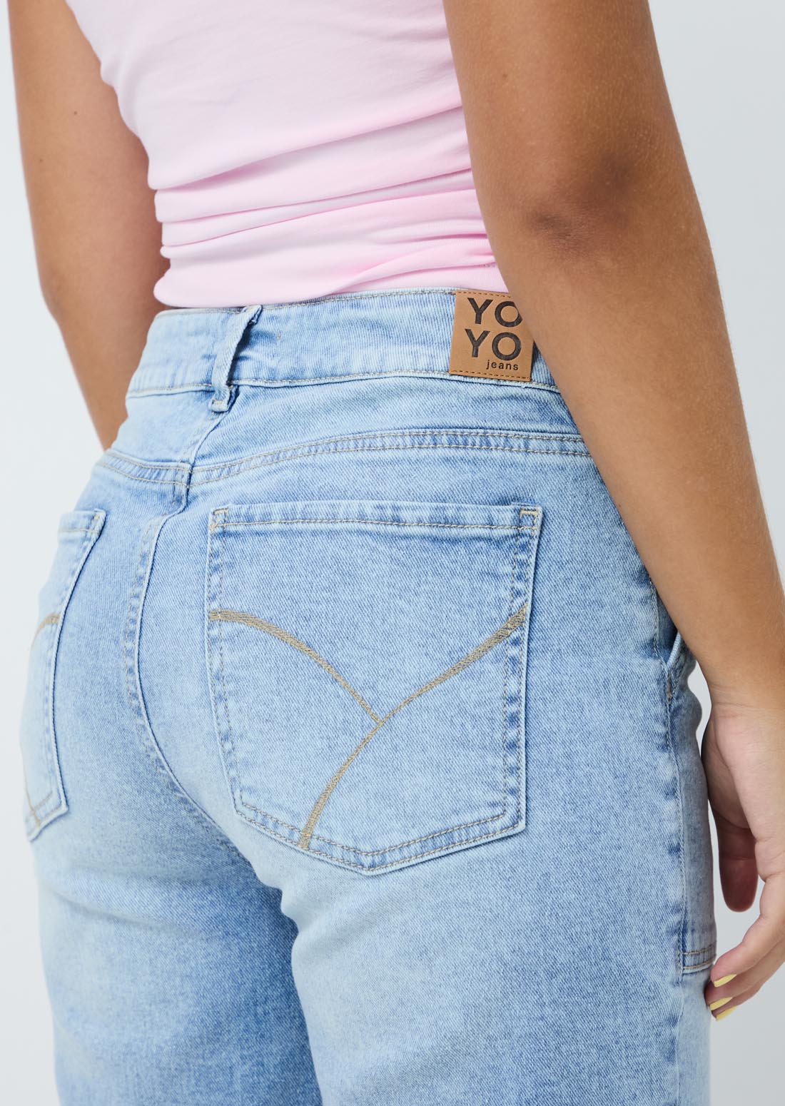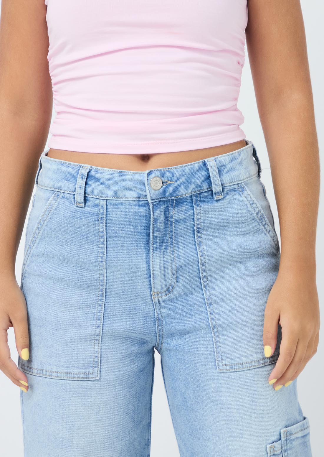 Jean cargo lavado claro y tiro alto para jóvenes
