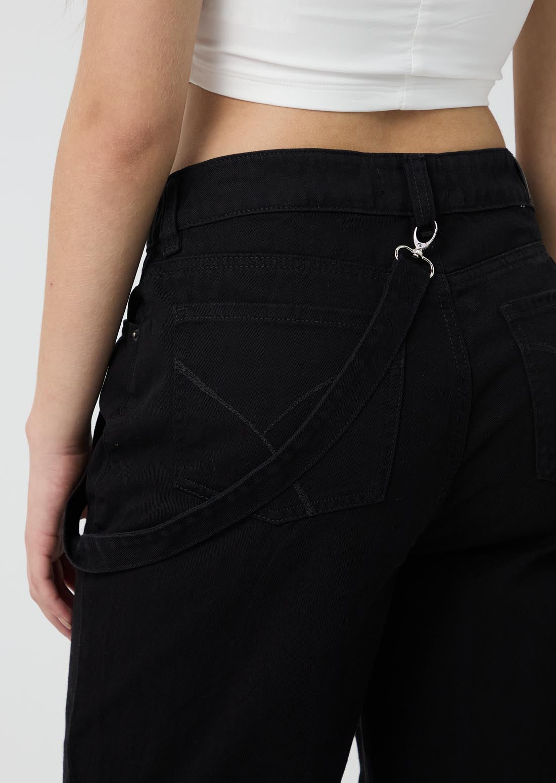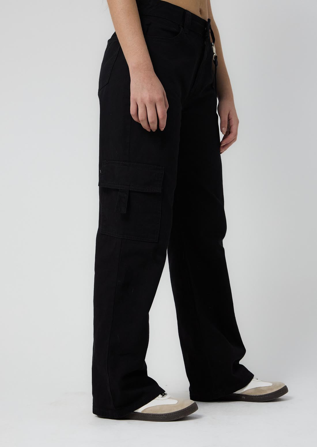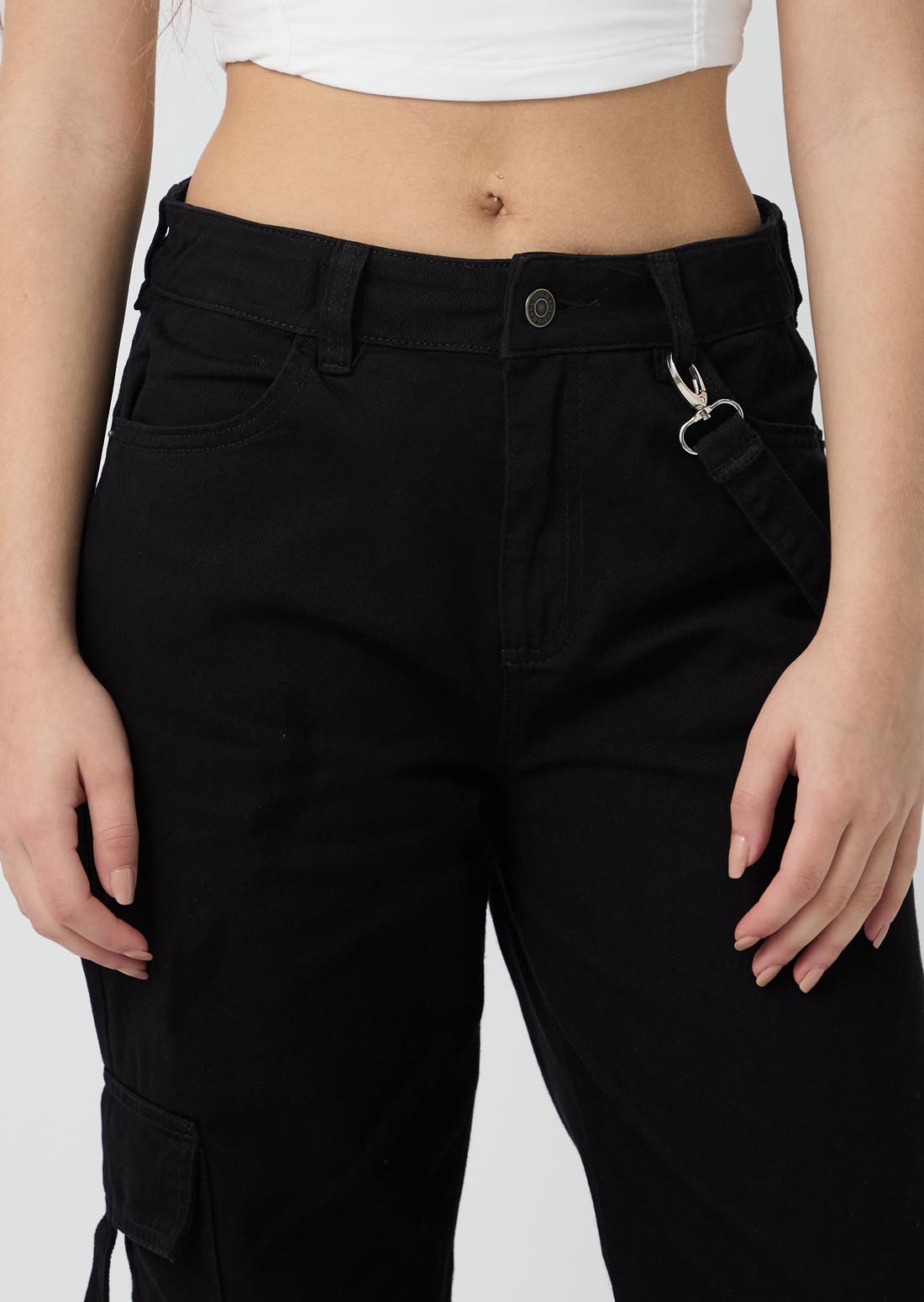 Jean cargo negro tiro alto para jóvenes