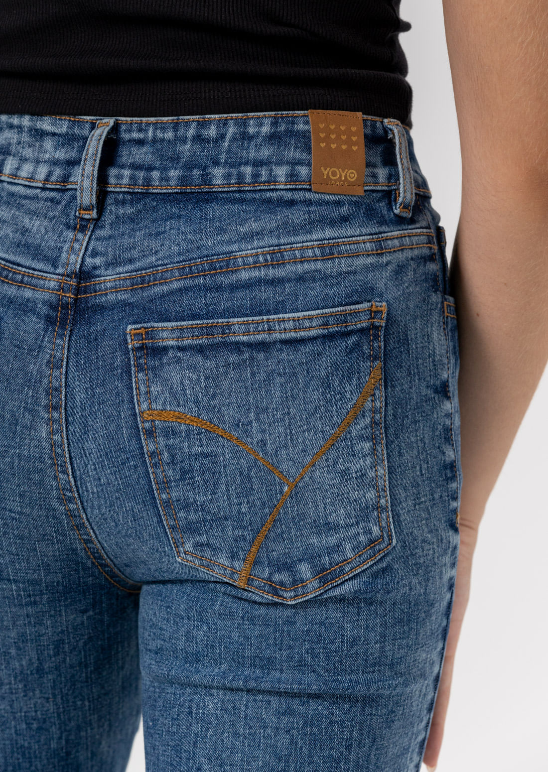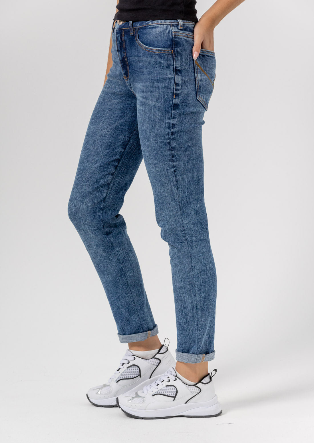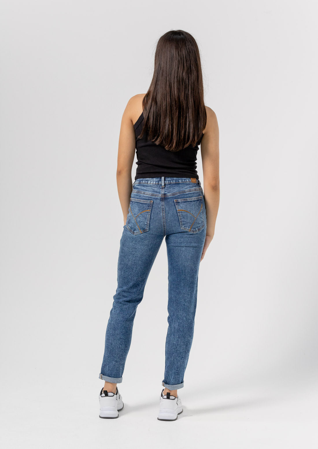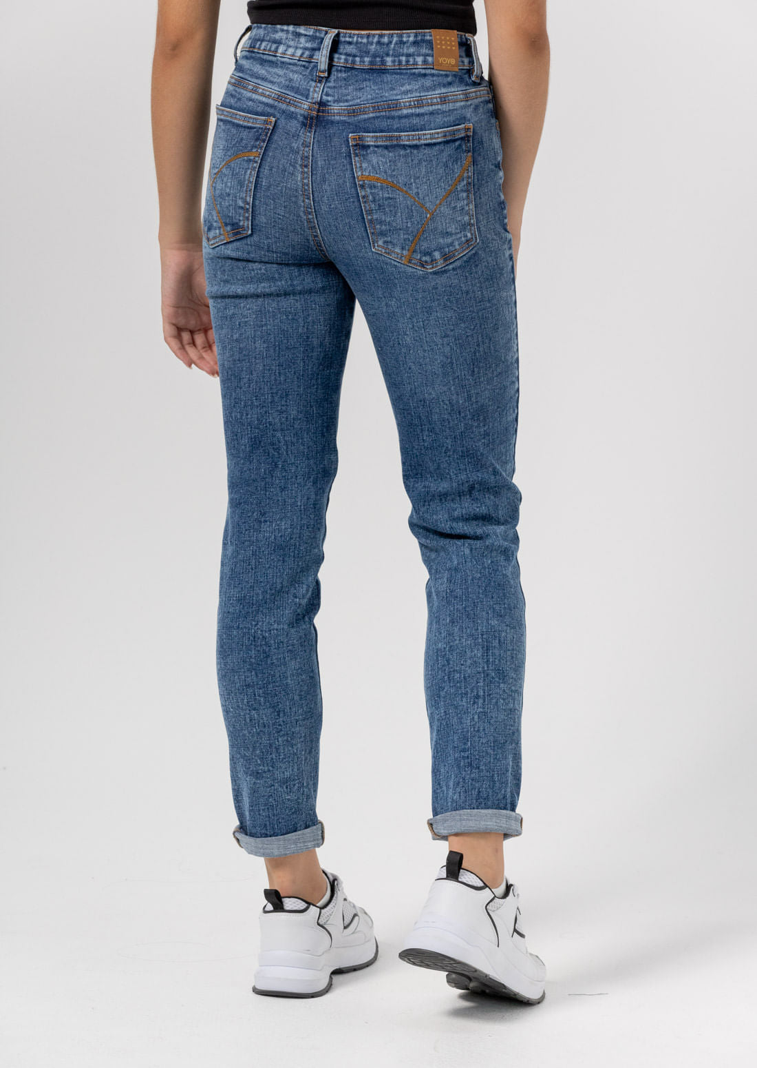 Jean cool, lavado medio, bota tubo, fondo entero y bolsillos funcionales para adolescentes.