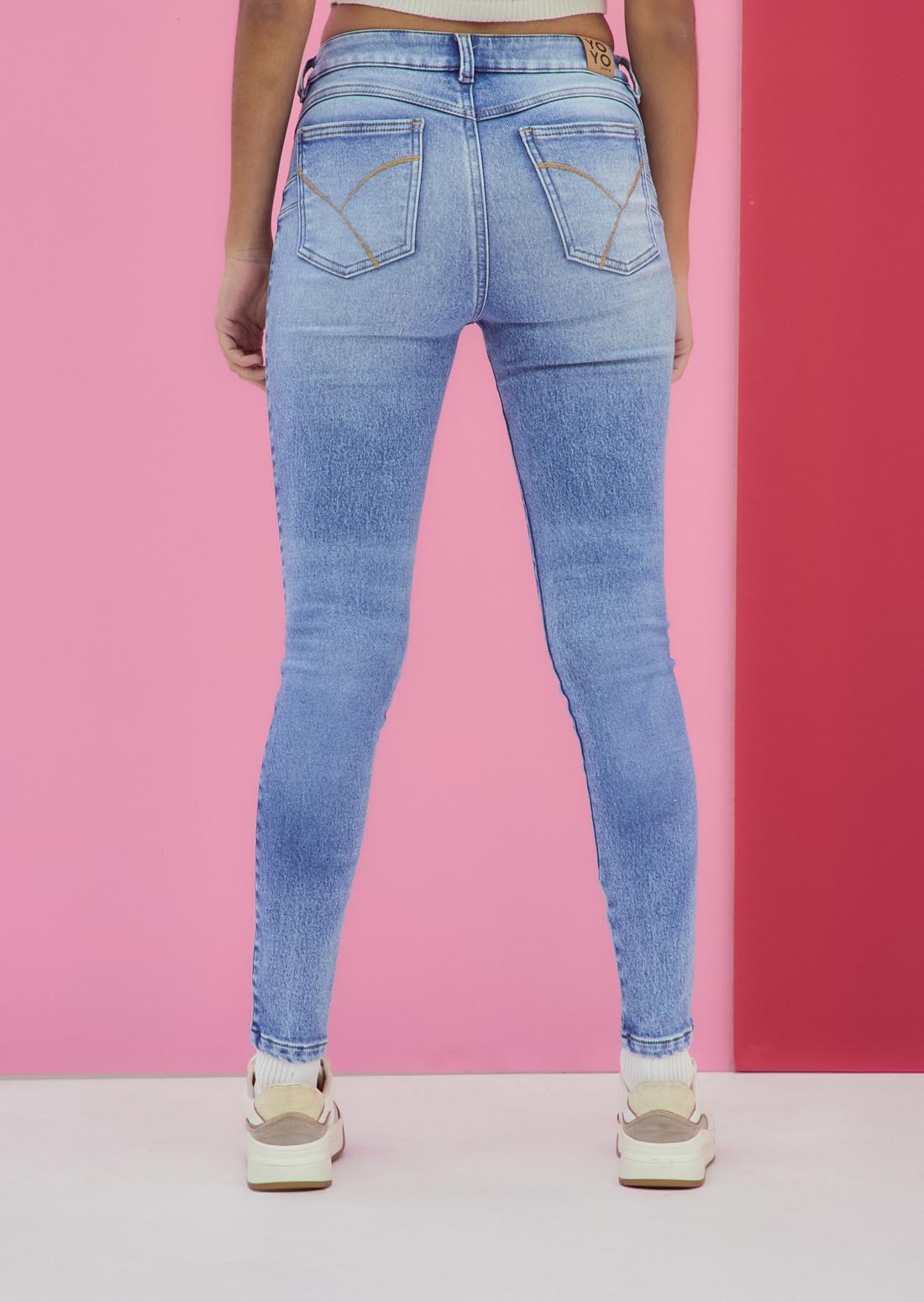 Jean crazy lavado medio oscuro y fondo entero para jóvenes.