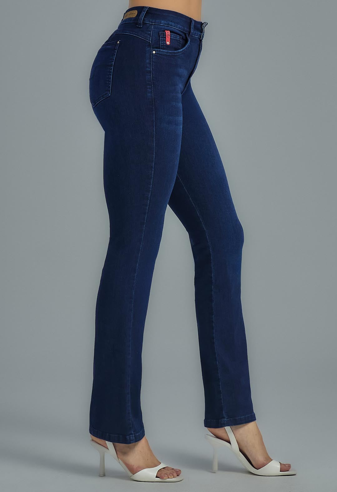 Jean levantacola lavado oscuro con bota recta para mujeres