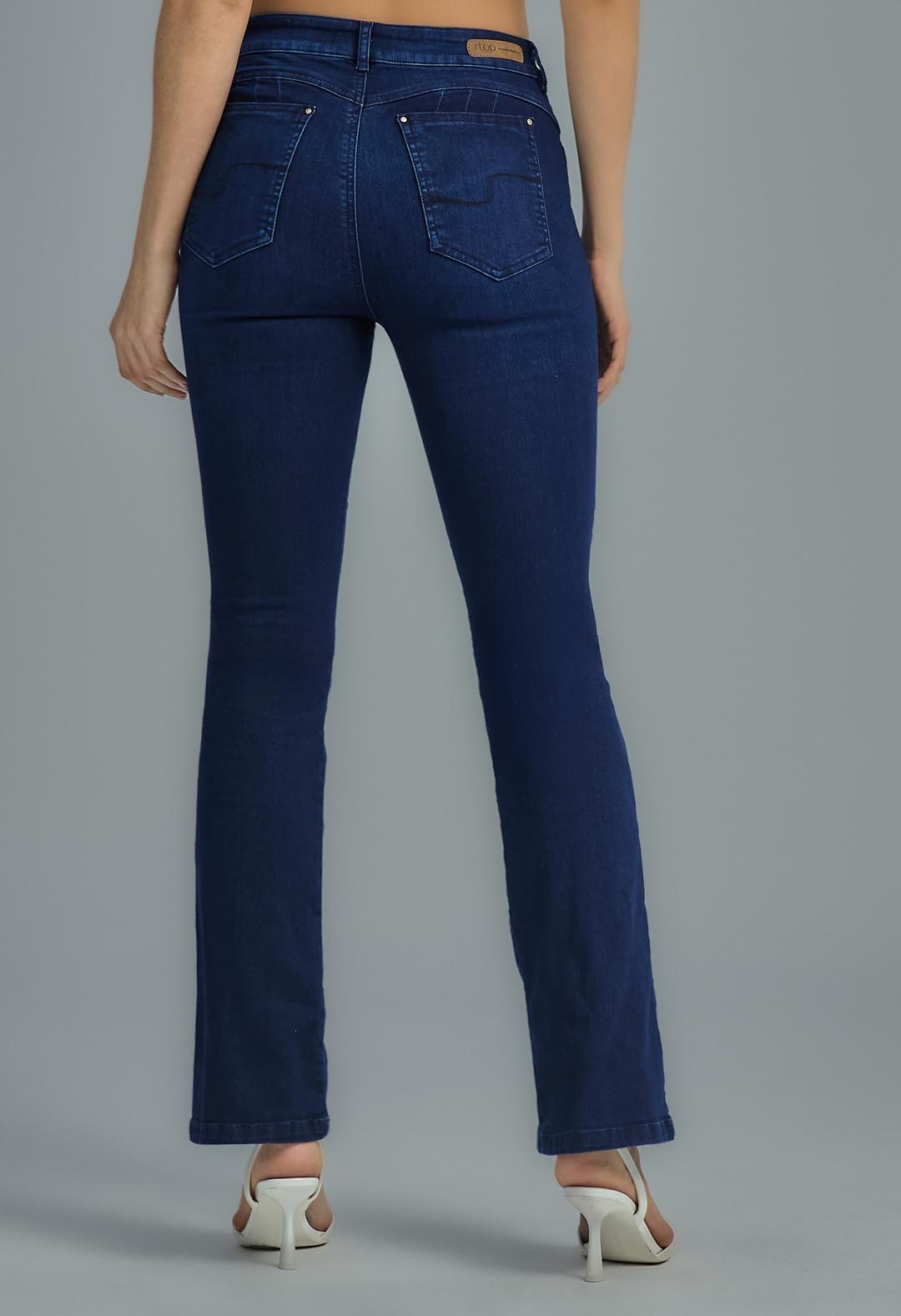 Jean levantacola lavado oscuro con bota recta para mujeres.
