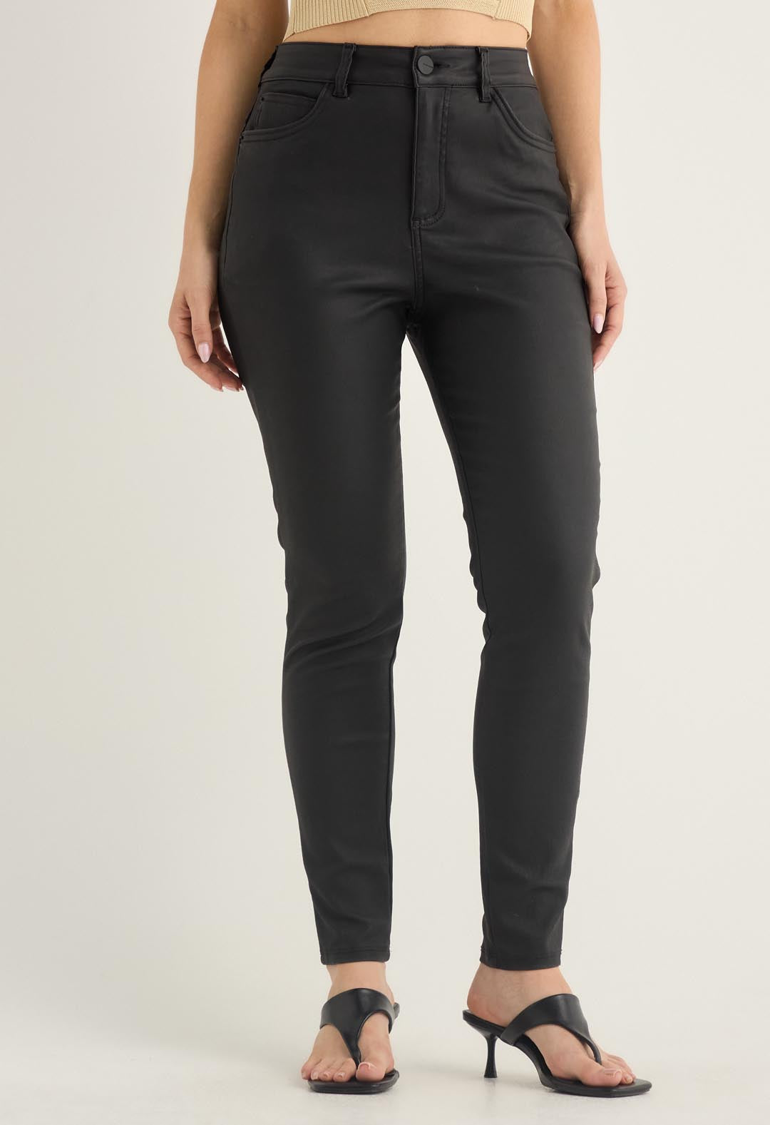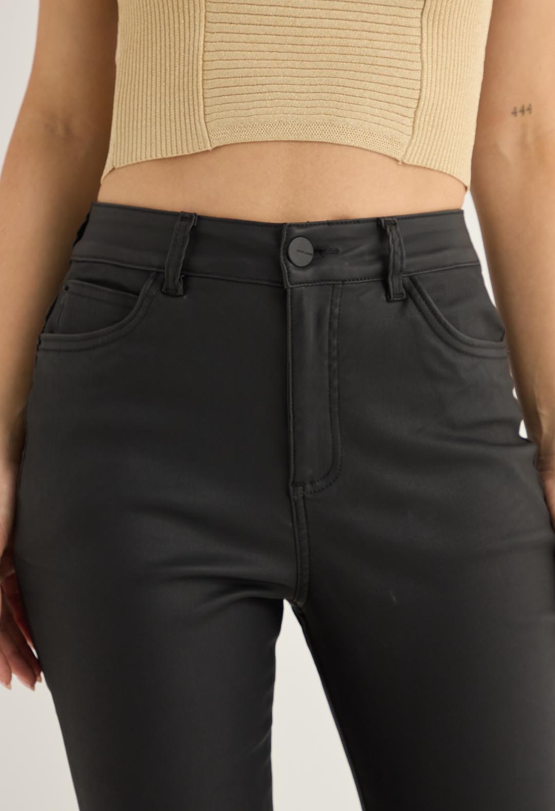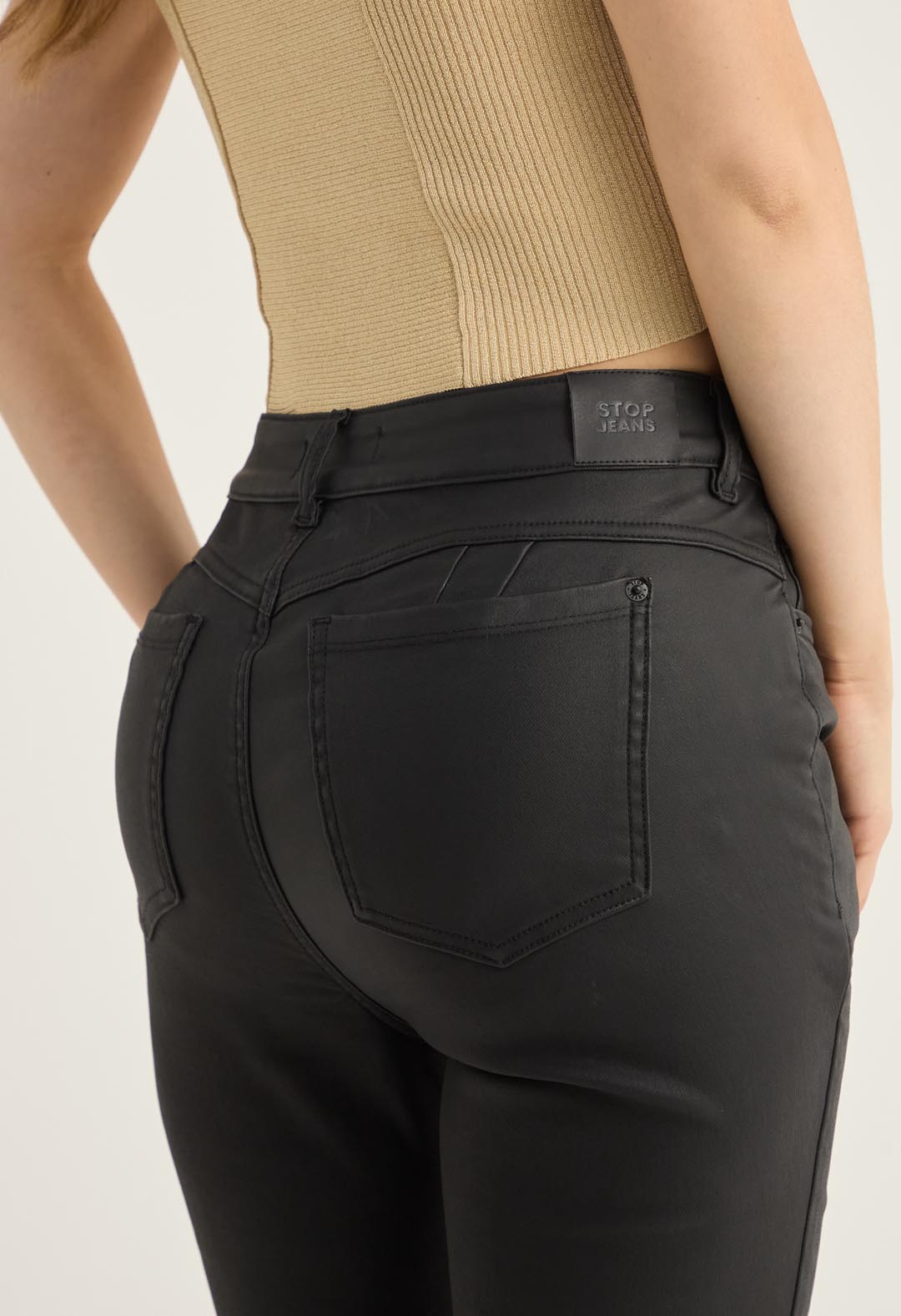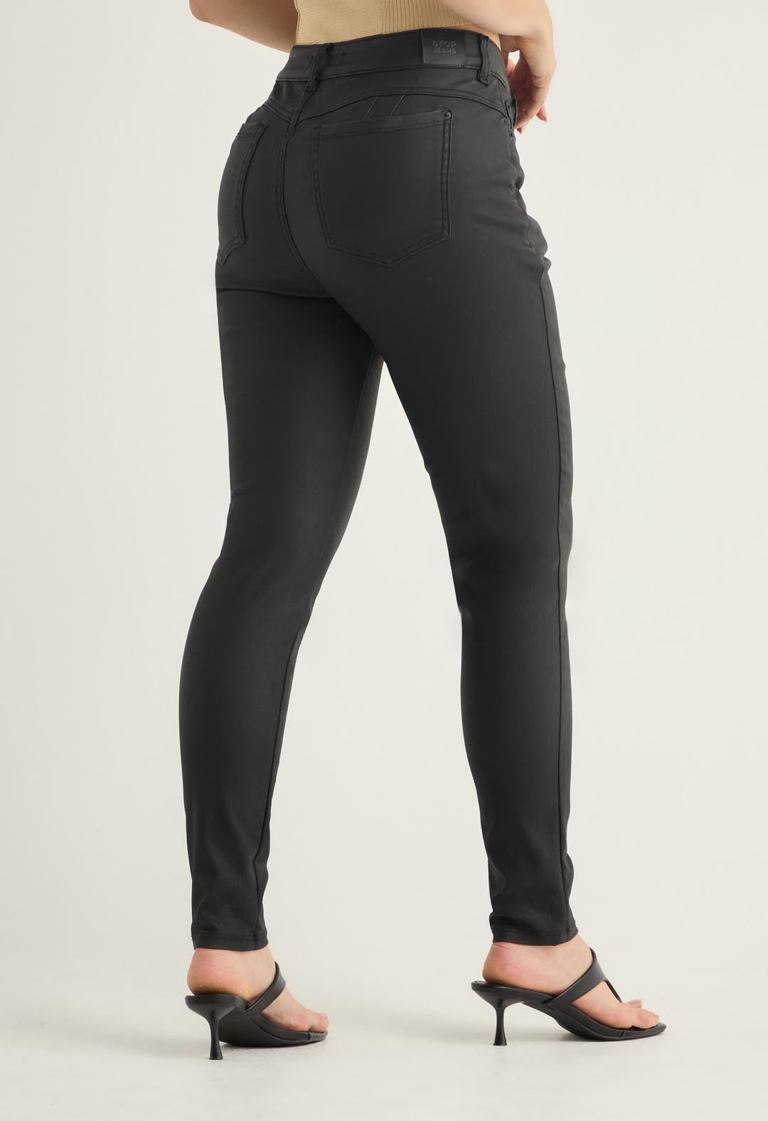 Jean levantacola tiro alto, color negro y fondo entero para mujer.
