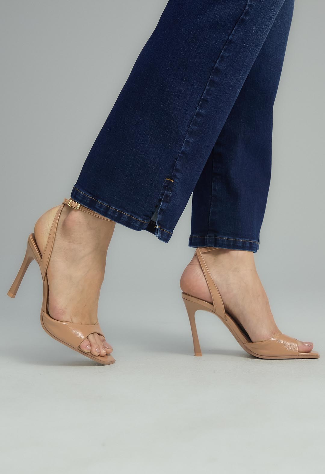 Jean levantacola, tiro alto, lavado oscuro, abertura en bota, fondo entero y bolsillos para mujeres.