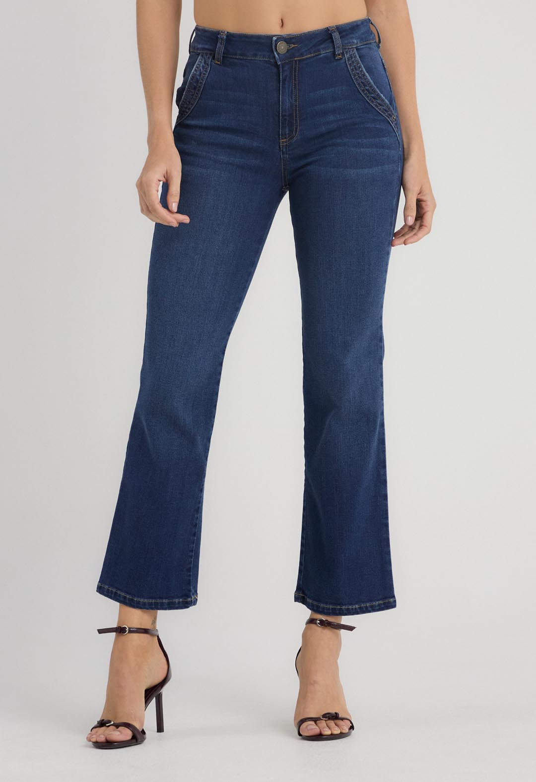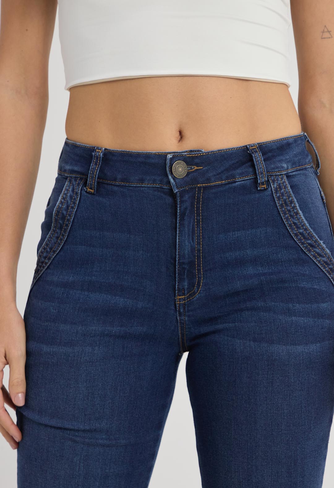 Jean levantacola oscuro con detalle en bolsillo para mujer
