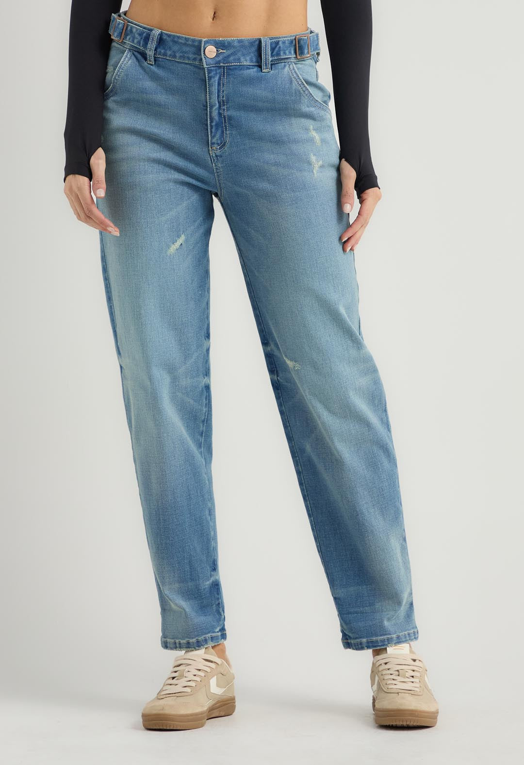 Jean mom jean medio tiro alto para mujer