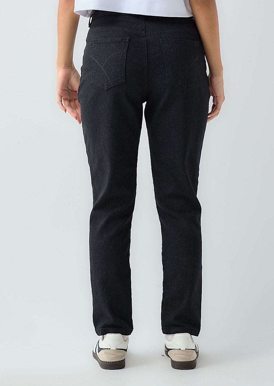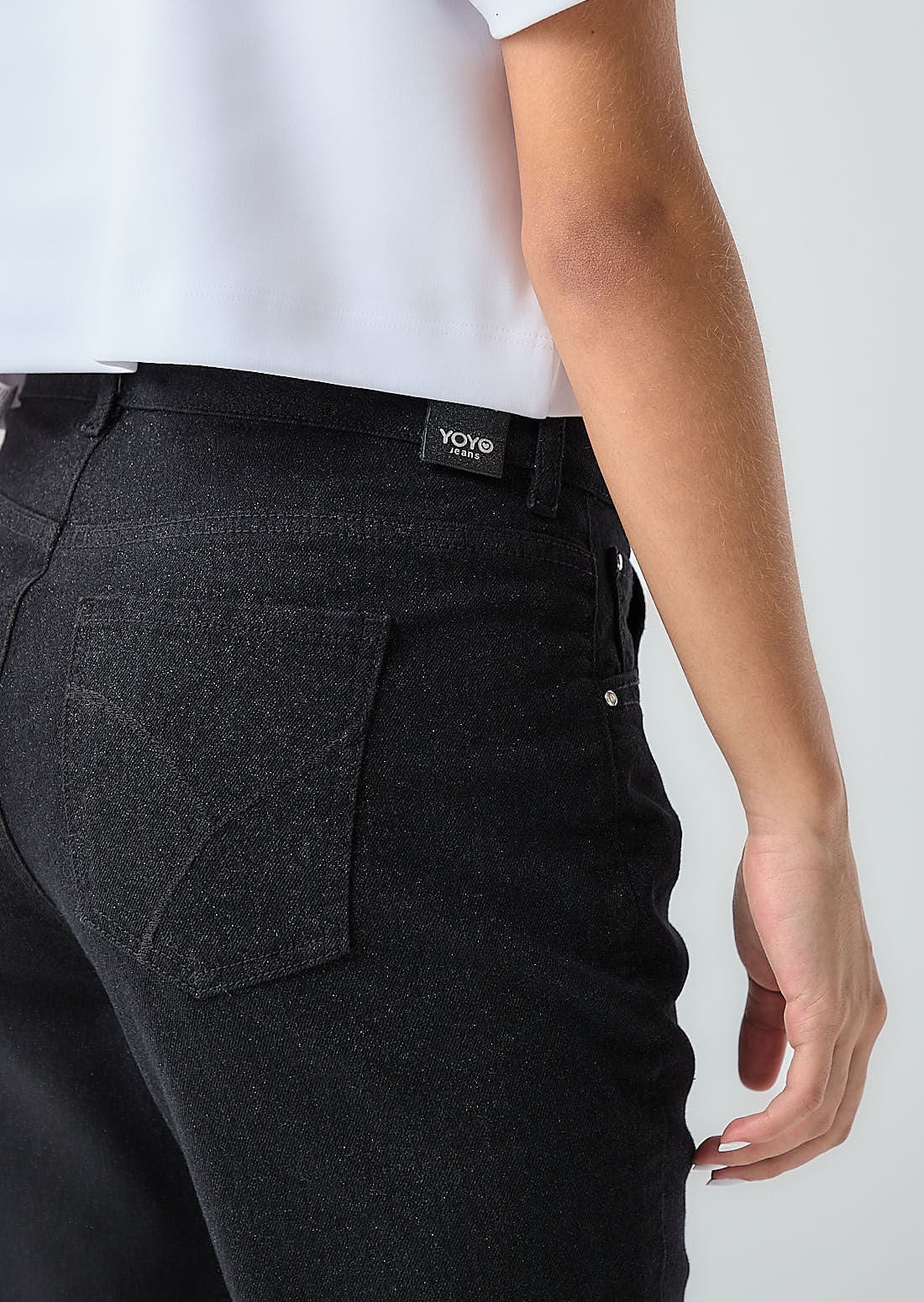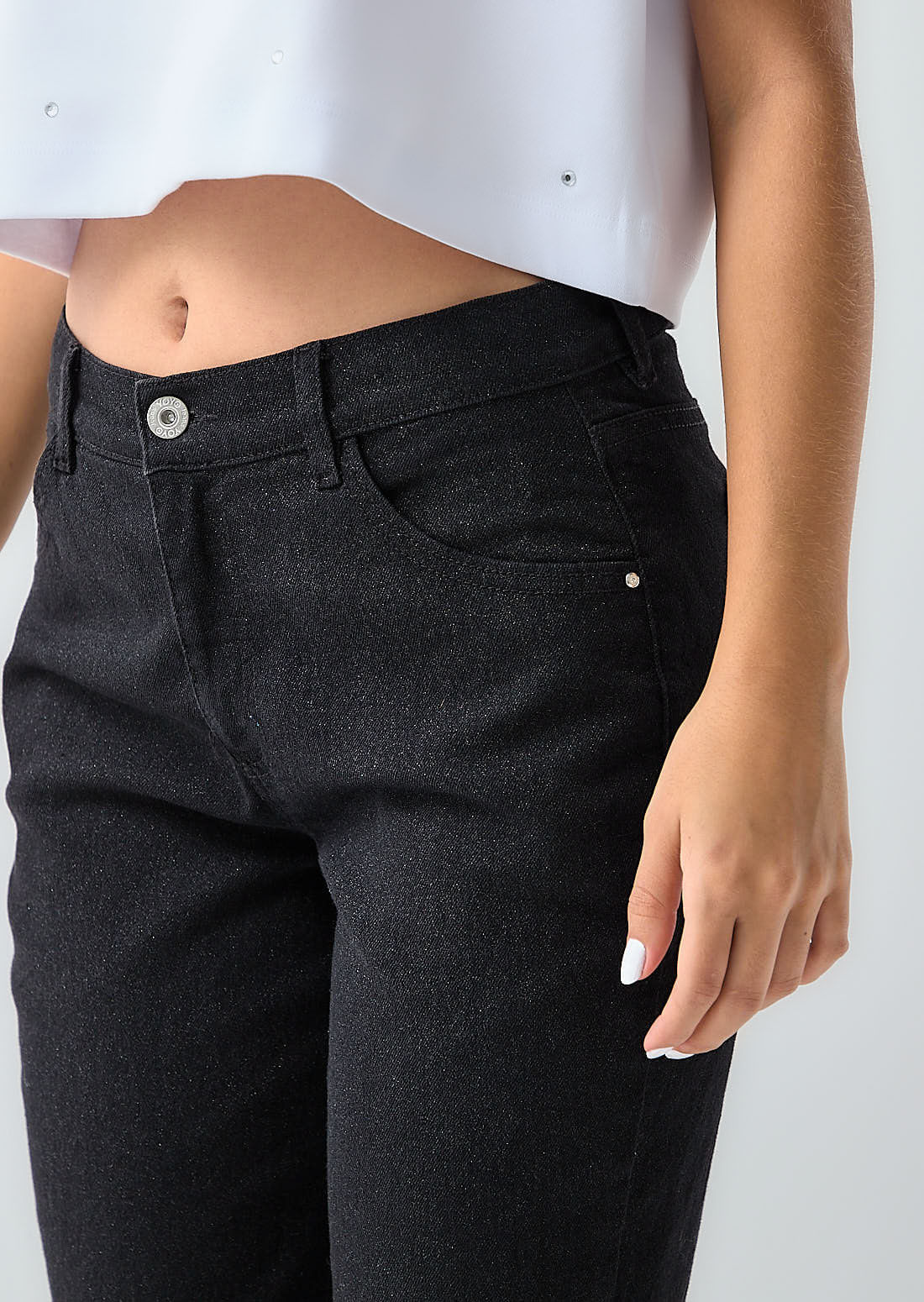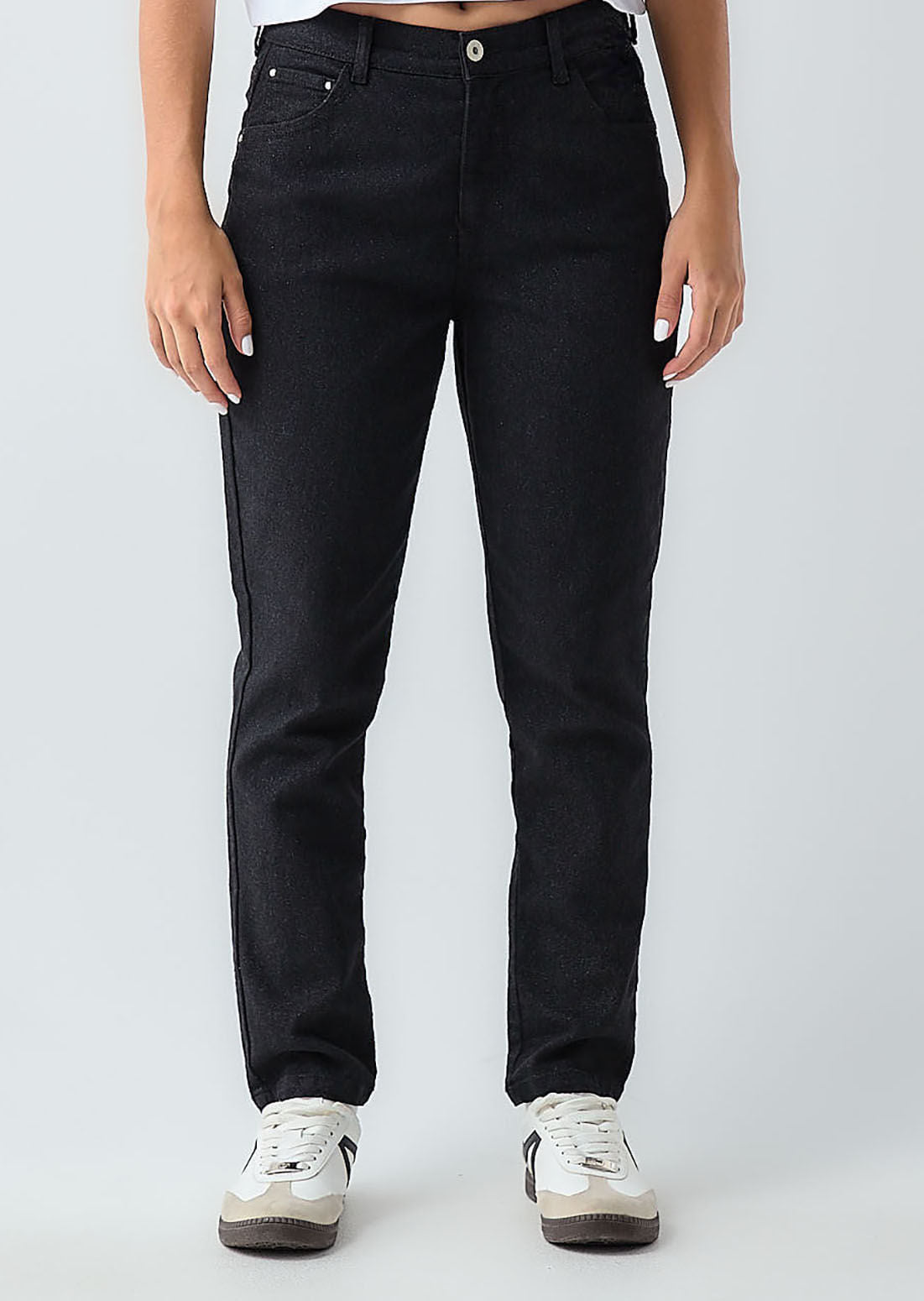 Jean mom jean, tiro alto, lavado medio, fondo entero, bota tubo y pretina en lavado contraste para jóvenes.