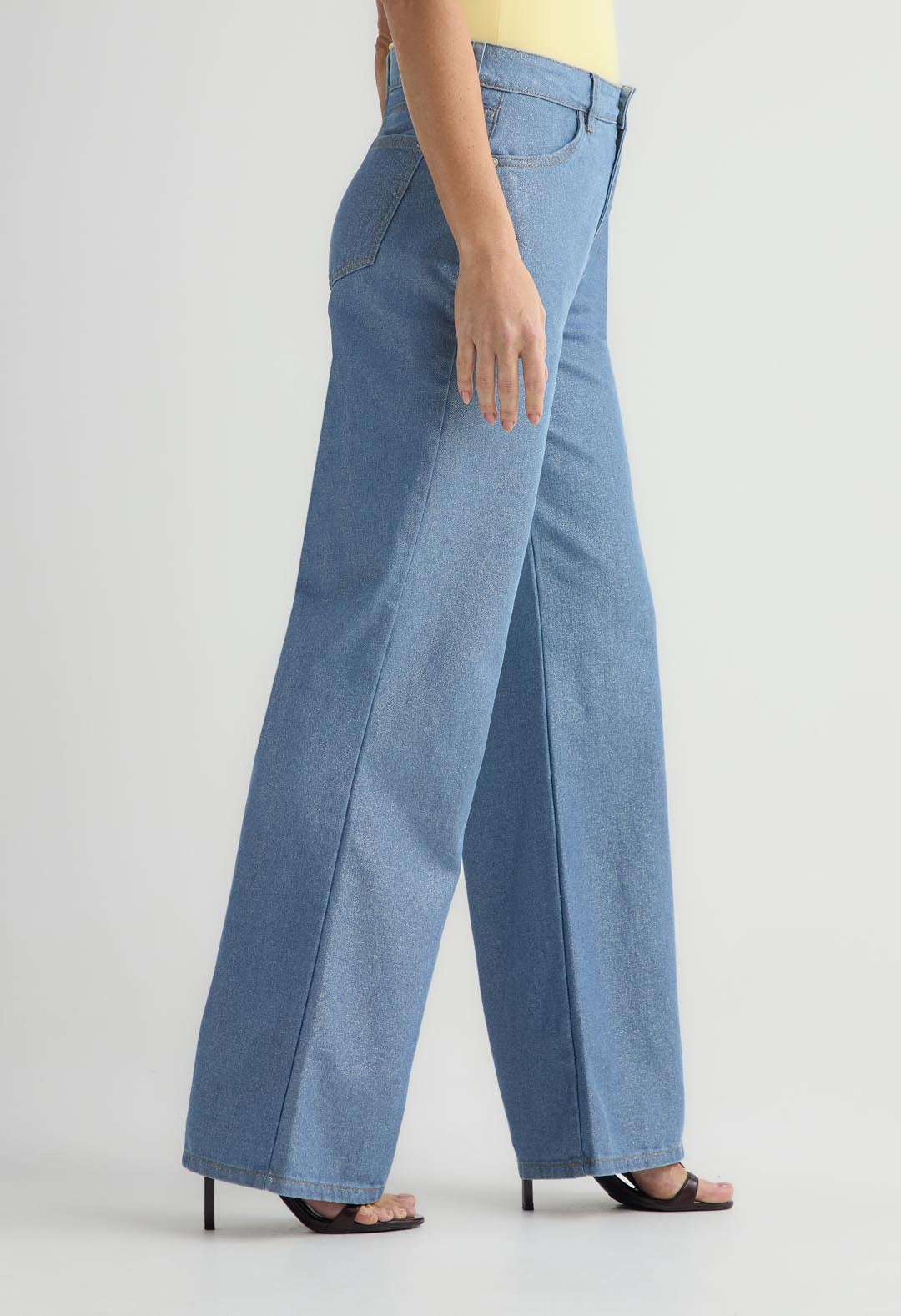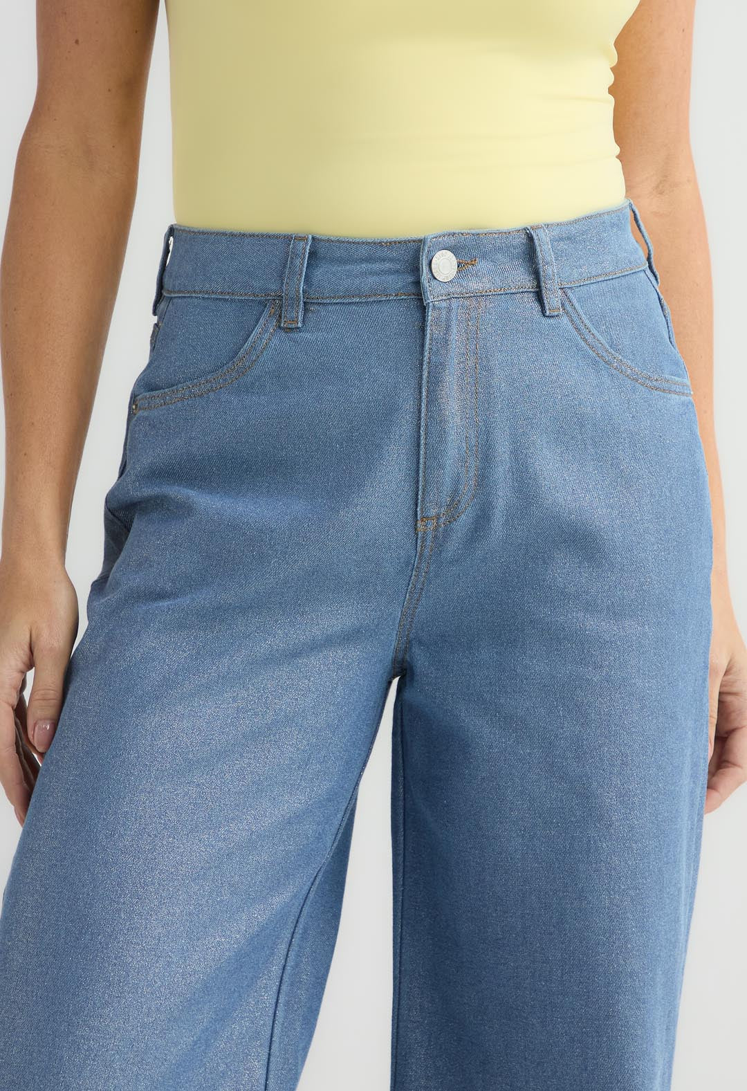 Jean retrojean tiro alto, lavado claro, fondo entero y bota recta para mujer.