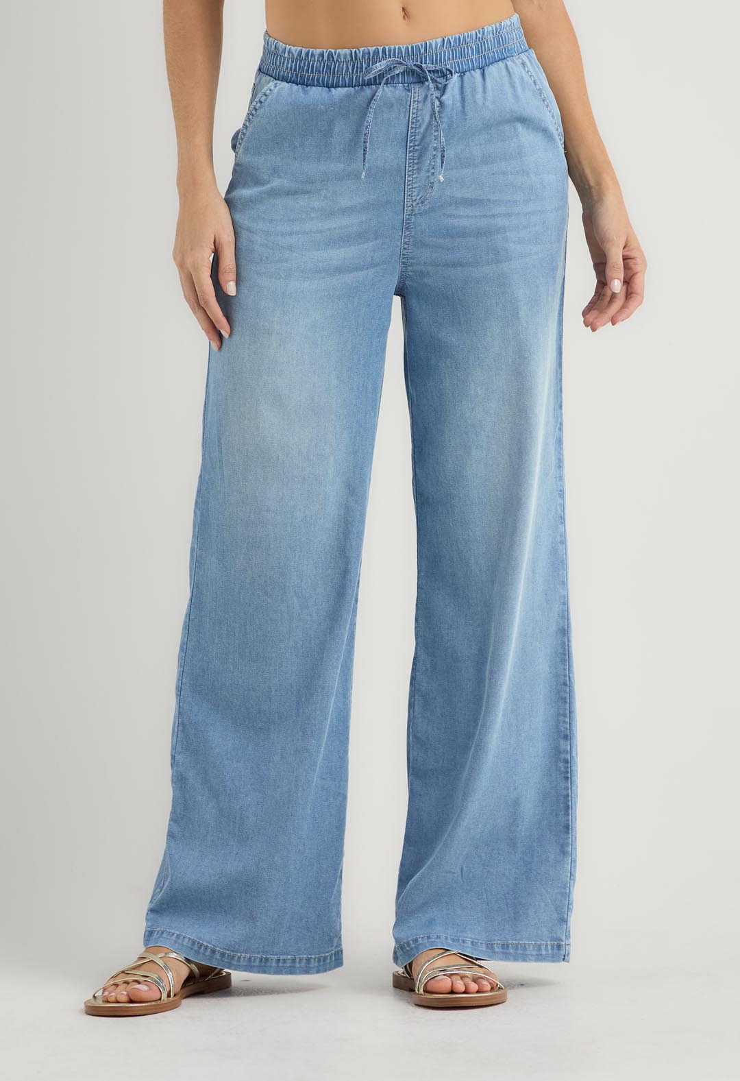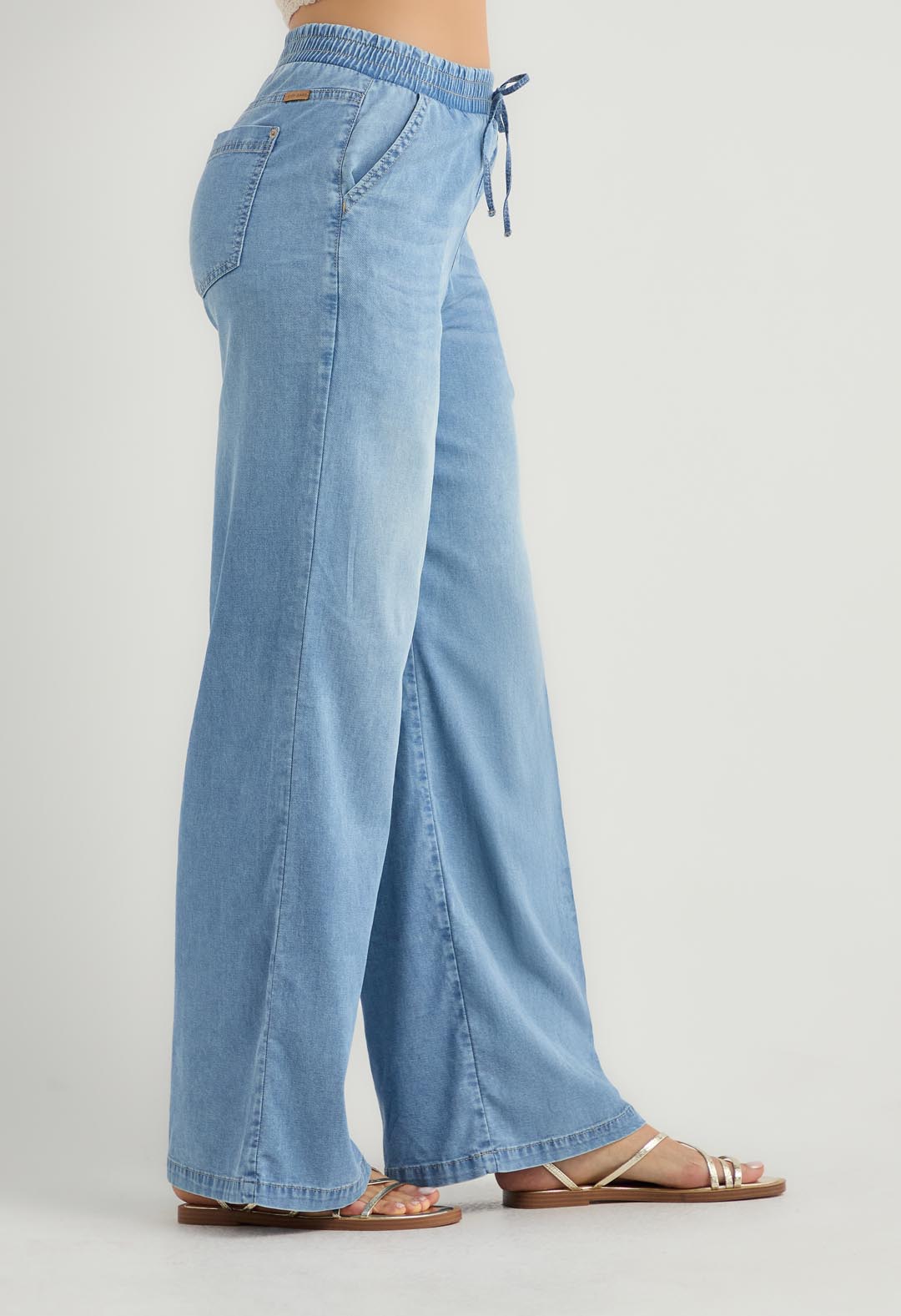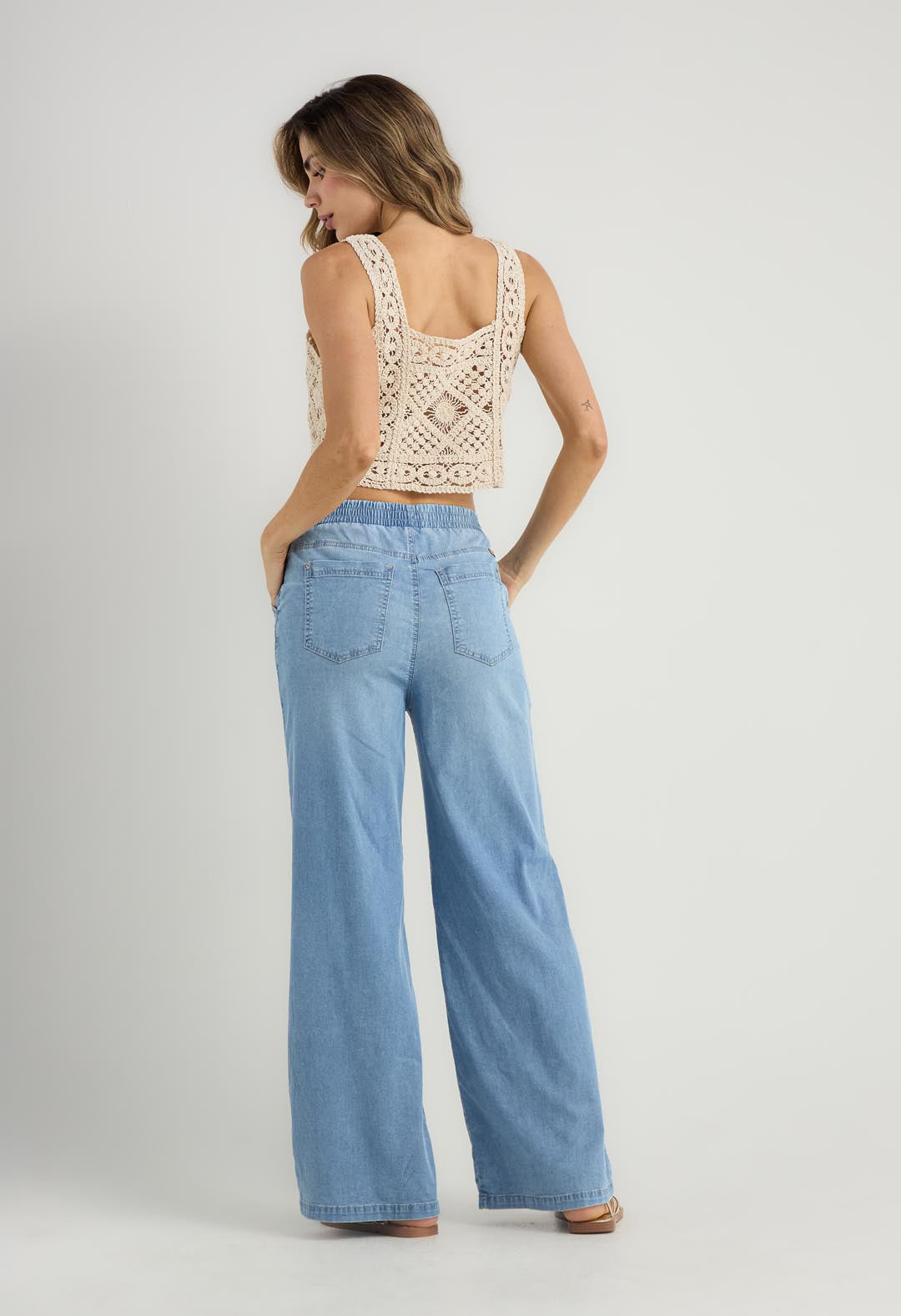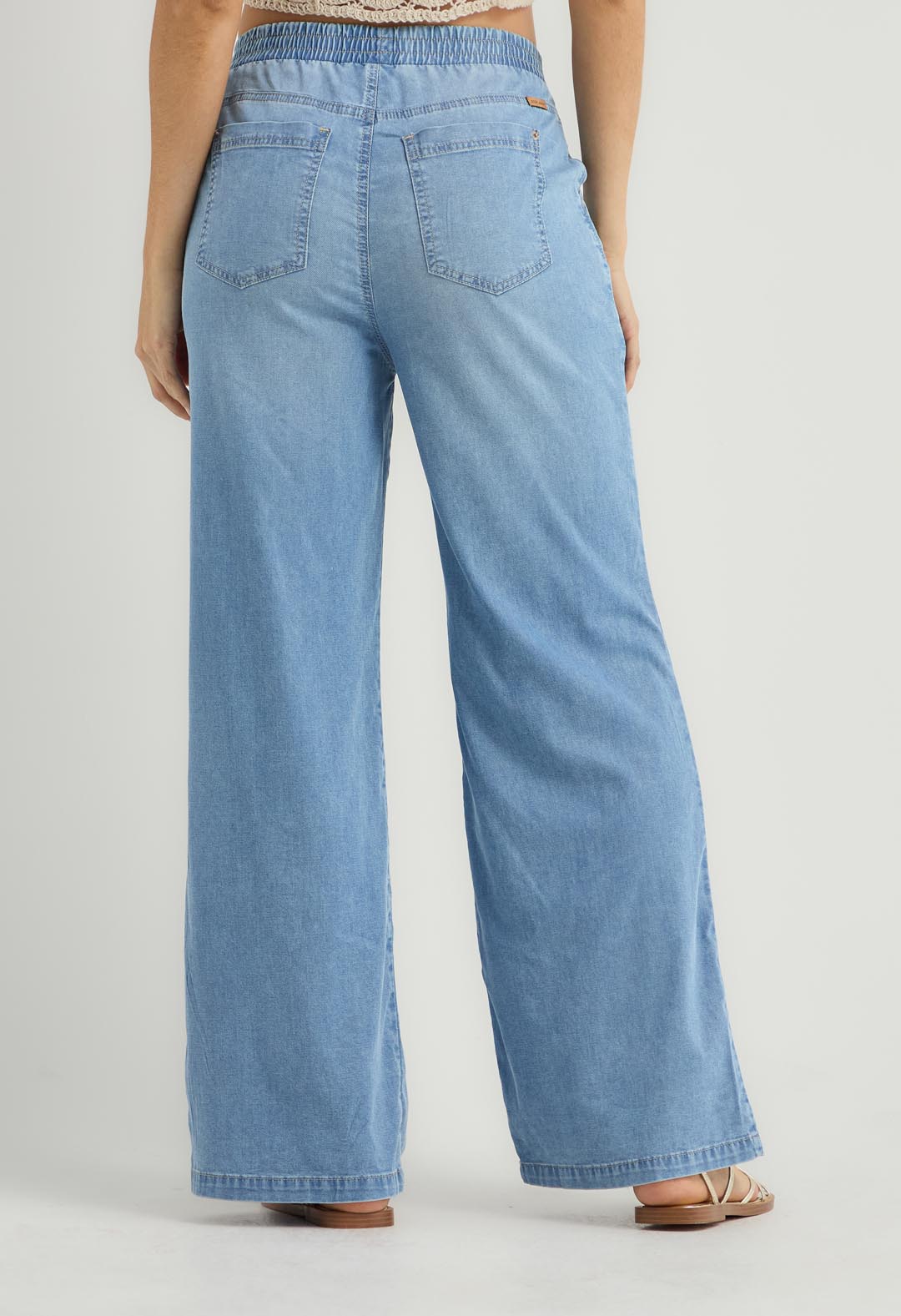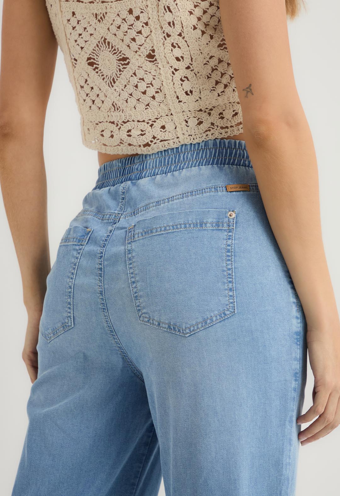 Jean retro medio con elástico en cintura para mujer.
