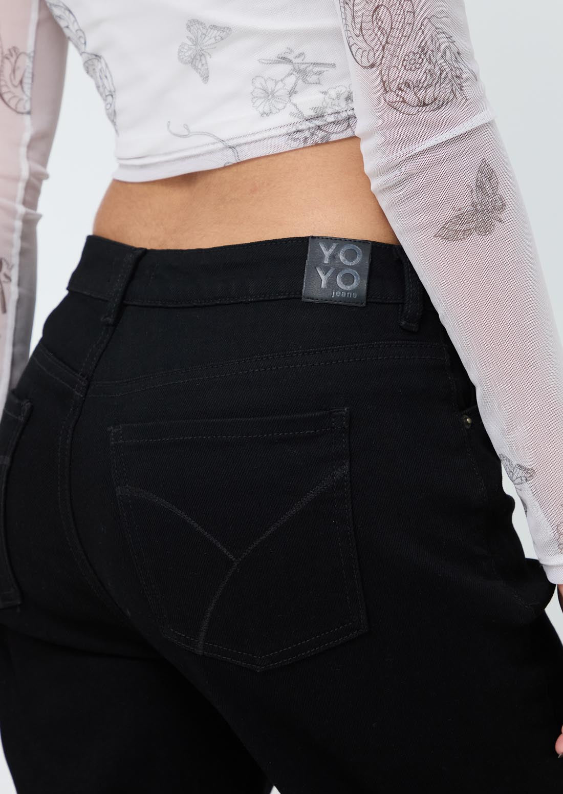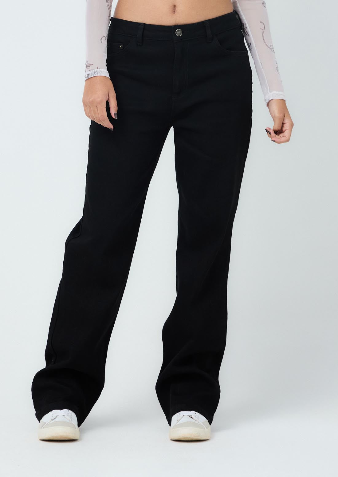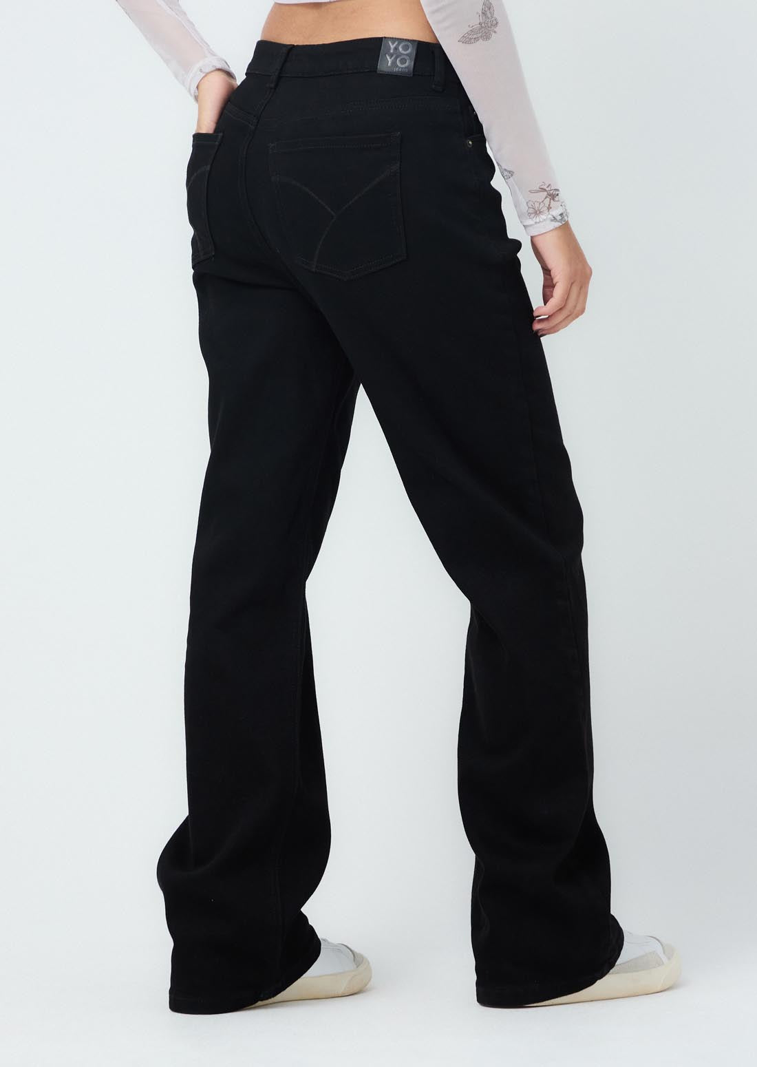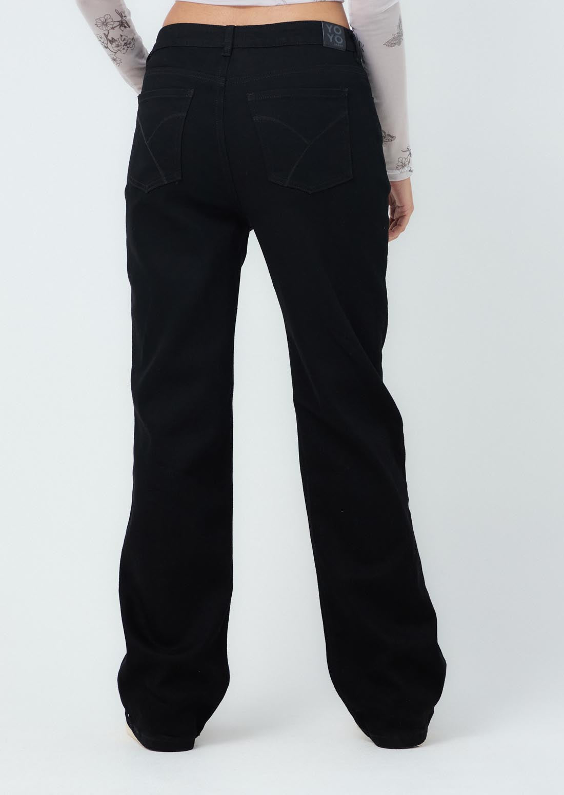 Jean retromom, tiro alto, color negro, fondo entero y bota recta para jóvenes.
