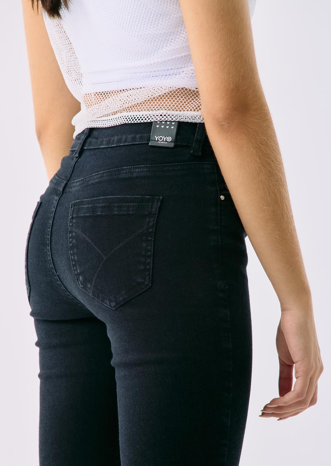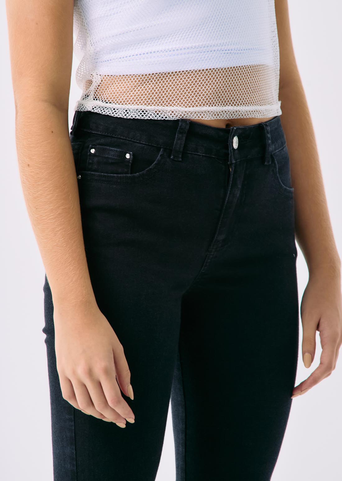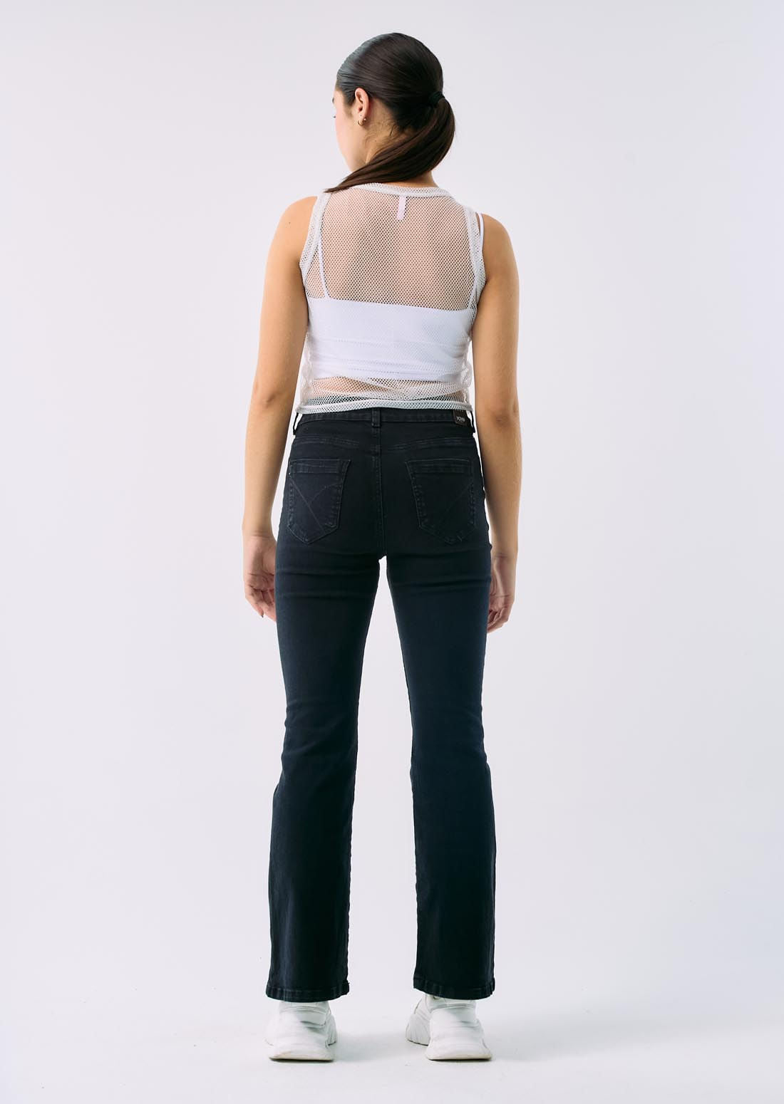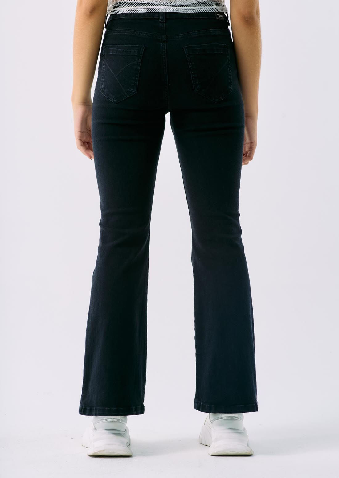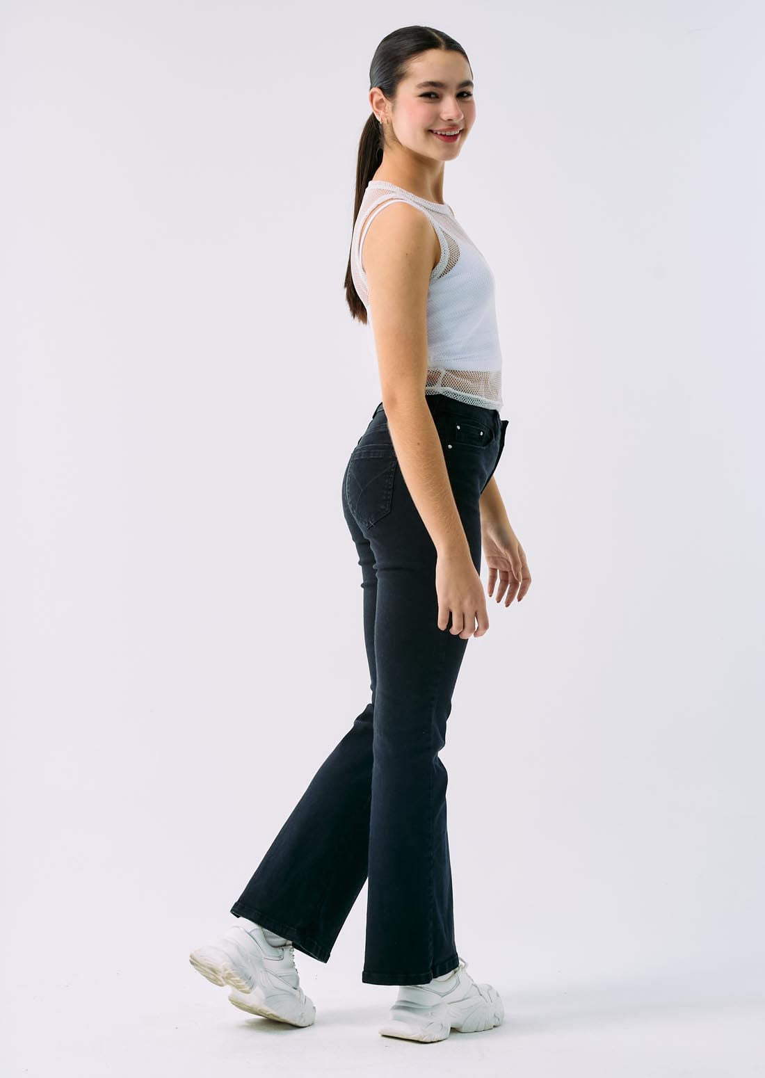Jean tejano tiro alto, lavado negro, bolsillos y bota ancha para jóvenes.