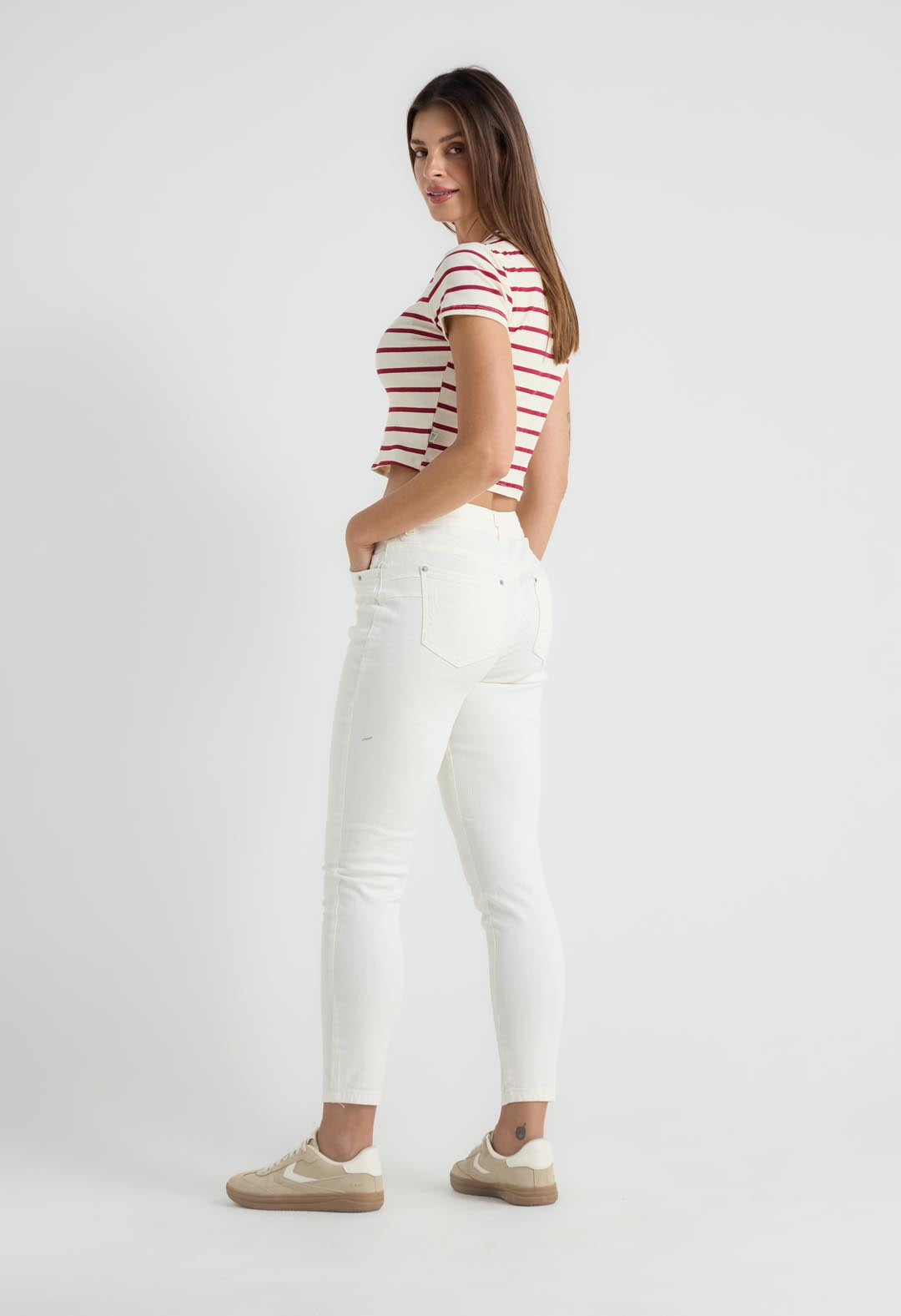 Jean vaquero marfil con bolsillos para mujeres.